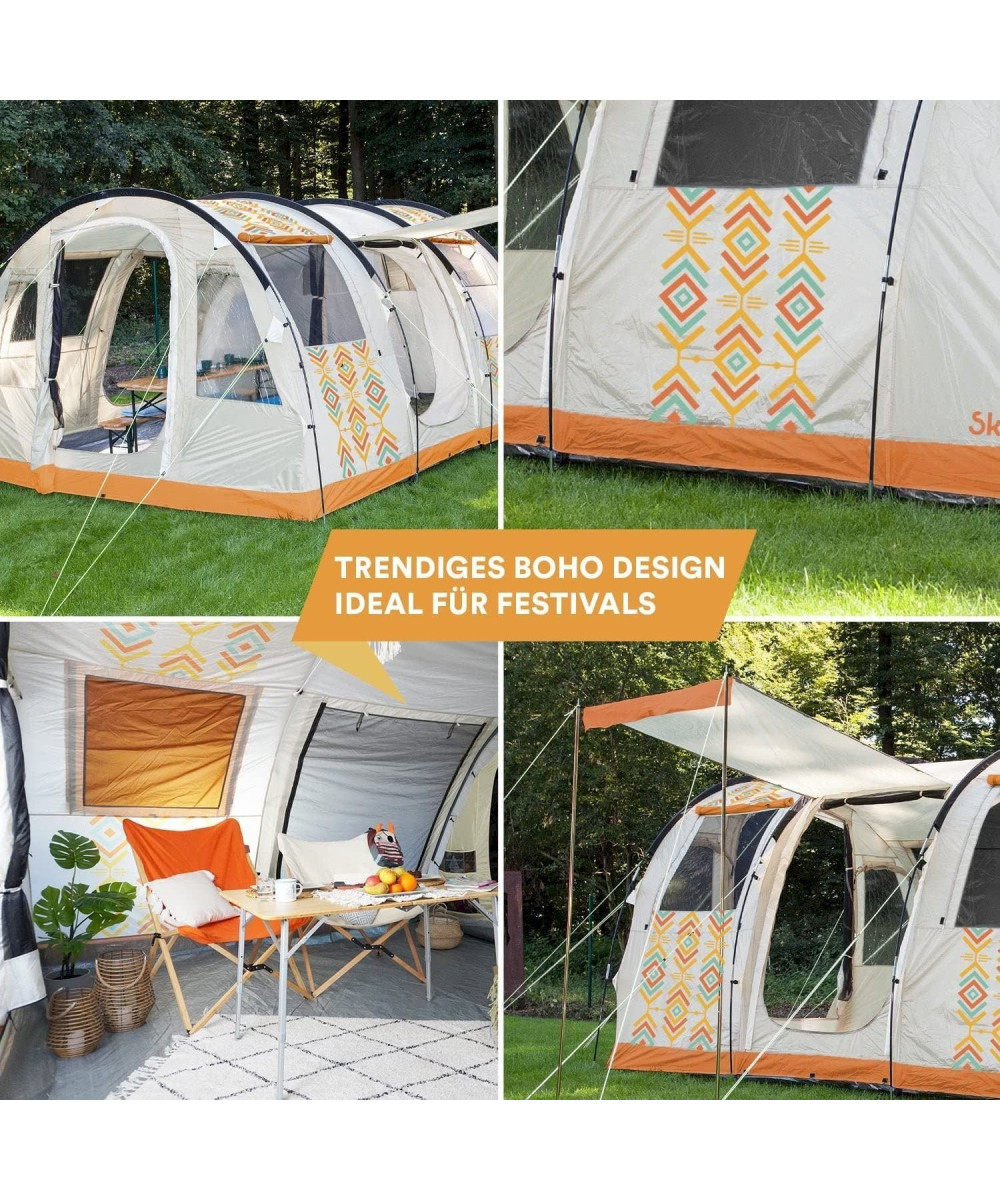 Skandika Tunnelzelt Gruppen-Zelt Familienzelt Gotland für 6 Personen Boho-Chic