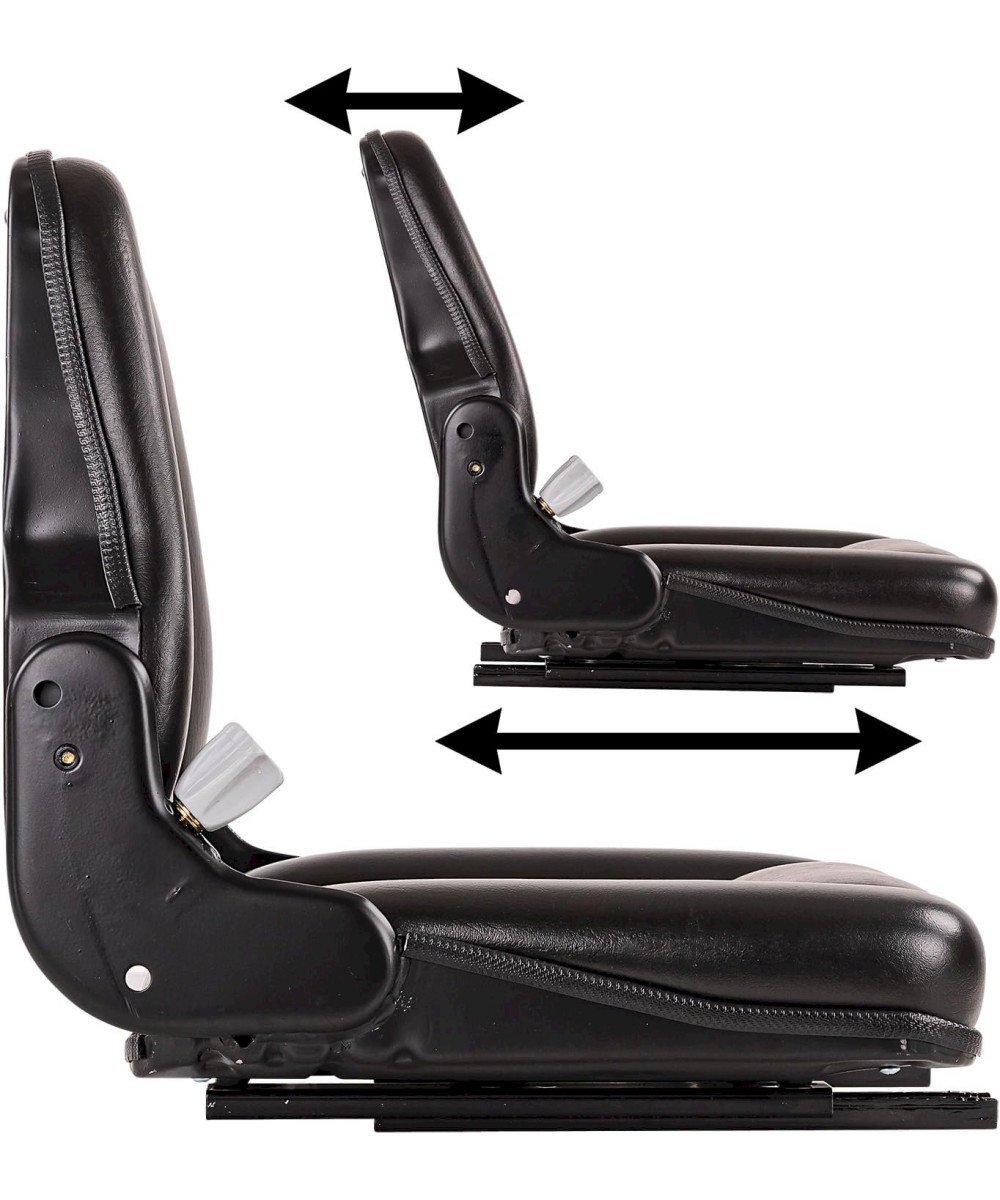 Für sicheres Fahren unter nahezu allen Bedingungen hält Sie Ihr neuer Staplersitz immer in der richtigen Sitzposition. Gleitschienen ermöglichen eine problemlose Längsverstellung, die stufenlose Rückenlehnenverstellung wird mittels Stellschraube realisiert. Falls Sie also auf der Suche nach einem vielseitigen und günstigen Sitz sind - hier erhalten Sie den Universalsitz schlechthin. Er passt auf beinahe alle gängigen Stapler + Baumaschinen, hat ein schickes Design, einen strapazierfähigen und wasserdichten Kunstlederbezug und ist hochwertig verarbeitet.