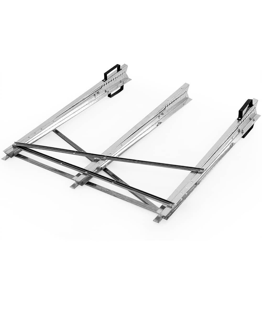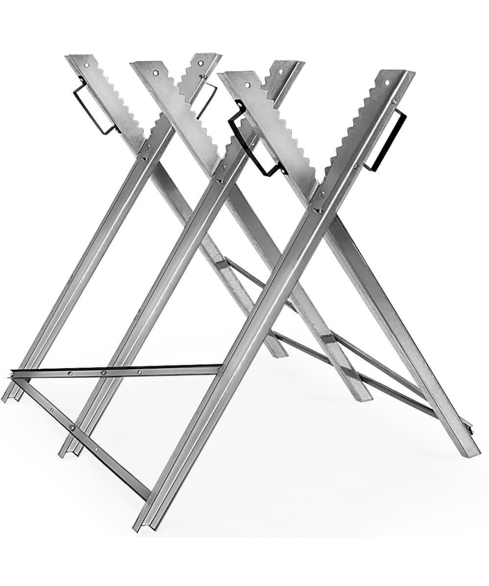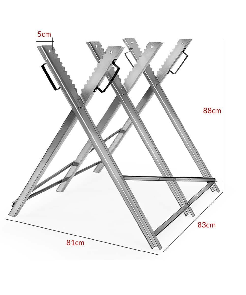 Der klappbare Holzschneidebock ist aus verzinktem Metall und steht durch zusätzliche Querstreben sicher und stabil auf jedem Untergrund!