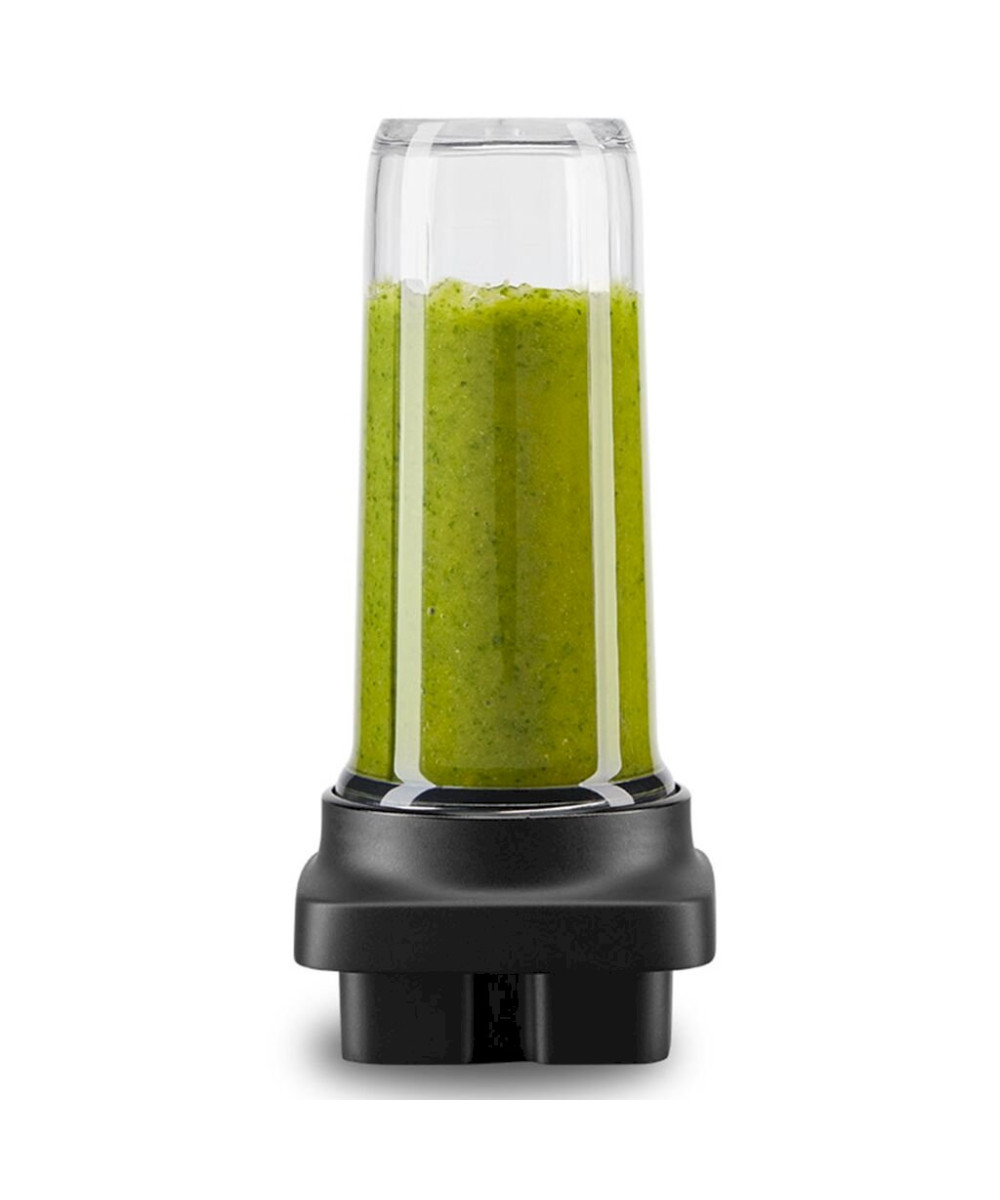 Dieser Mehrzweck-Mixerbehälter besteht aus BPA-freiem Kunststoff und hat ein Fassungsvermögen von 500 ml – die ideale Größe für eine Portion. Sorgen Sie aber dafür, dass nur kühle Zutaten hineinkommen – der Behälter ist nicht zum Mixen heißer Flüssigkeiten geeignet, dafür aber perfekt für gesunde Smoothies, frisch gepressten Saft, Shakes, Lattes oder sogar ein erfrischendes Minz-Gurken-Gazpacho.