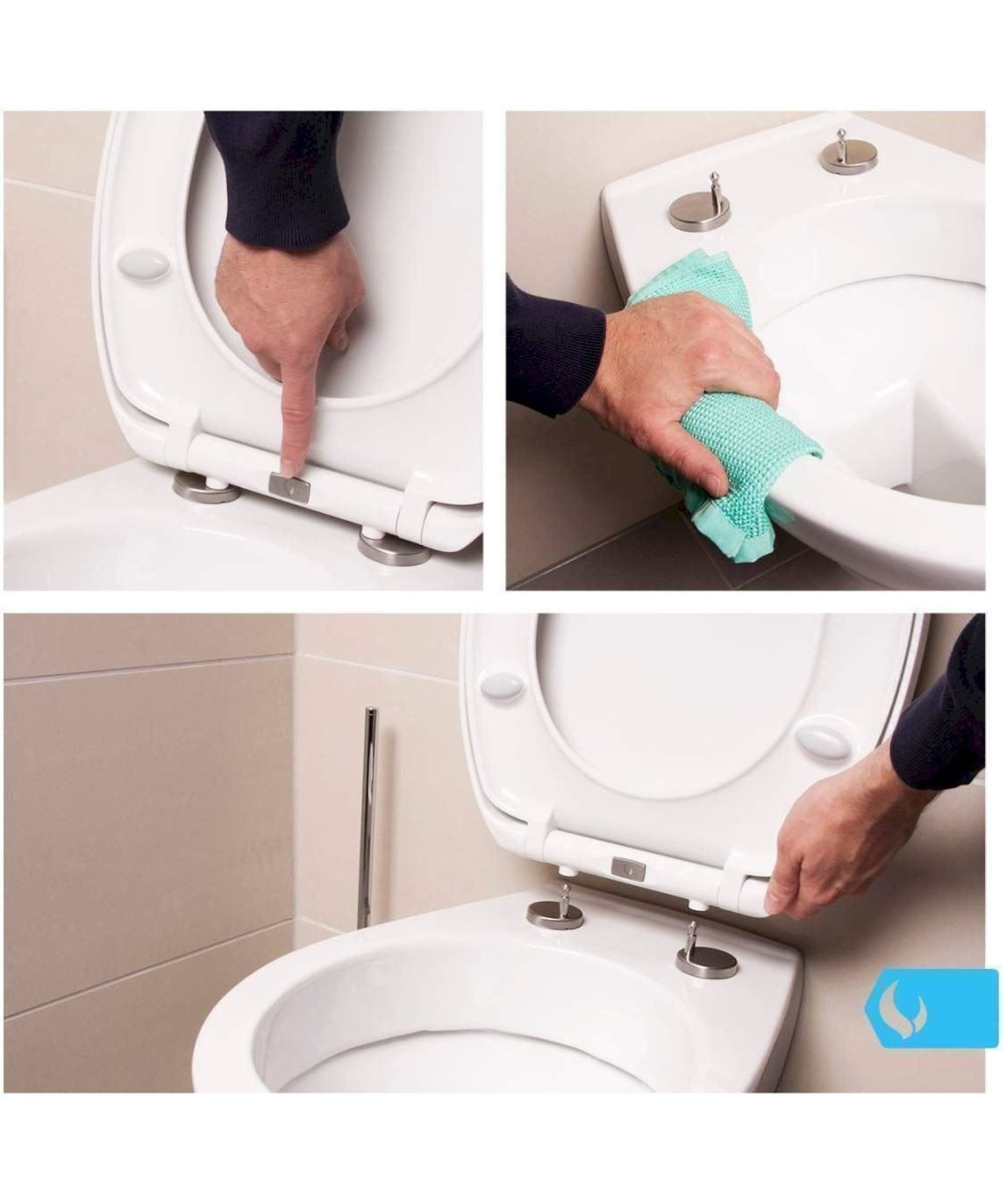 Système d'abaissement automatique : le Bullseat a un système hydraulique de descente automatique qui garantit une dispersion silencieuse et uniforme sur la cuvette des toilettes.
