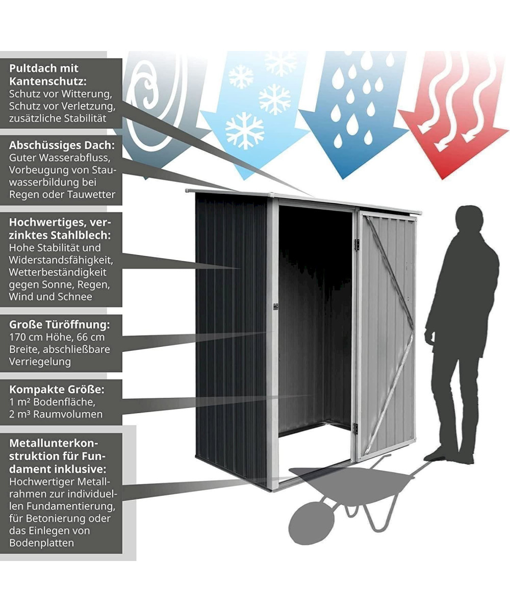 L'abri est fabriqué en tôle d'acier laquée et galvanisée et s'intègre parfaitement dans tous les environnements.
