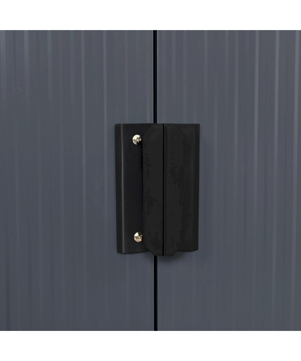 Pour une bonne circulation de l'air à l'intérieur, deux ouvertures d'aération sont fixées à l'avant de l'abri de jardin. L'air circulant peut efficacement évacuer l'humidité. La formation de condensation, les taches de moisissure, les moisissures et les mauvaises odeurs est efficacement évitée.