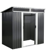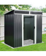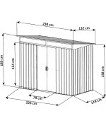 La cabane à outils pour le jardin se compose de pièces de mur et de toit robustes, galvanisées et peintes, et d´un cadre de fondation galvanisé. Les lucarnes en polycarbonate transparent fournissent suffisamment de lumière du jour à l´intérieur. Avec des dimensions extérieures de (L) 238 x (P) 132 x (H) 180 cm et une empreinte de (L) 226 x (P) 119 cm, vous disposez d´un espace suffisant pour stocker votre matériel avec environ 4,5 m³. Grâce à deux portes coulissantes d´une hauteur d´entrée de 154 cm et d´une largeur de 79 cm, tous les outils de jardin, tels que les outils, les meubles de jardin, les vélos et les poubelles entrent dans votre cabane. L´abri de jardin est livré démonté. Grâce aux instructions de montage détaillées, le hangar métallique peut être assemblé en peu de temps. Le volume de livraison comprend un kit complet d´abri de jardin, y compris les fondations métalliques, qui donne à l´abri de jardin un support sûr.