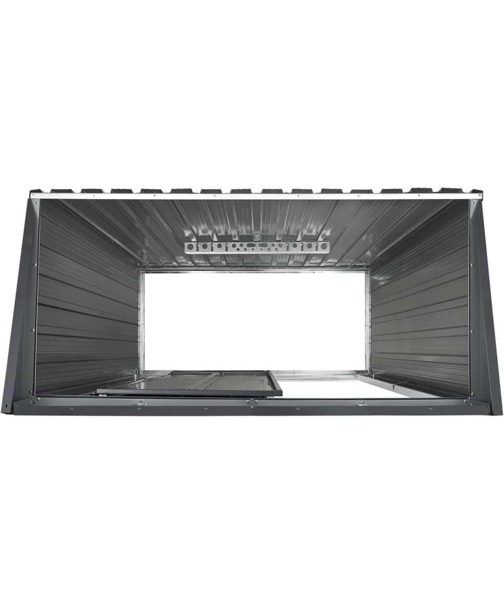 Der Metall Schuppen trotzt Regen, Schnee, Frost und Sonne. Aus verzinktem Stahlrahmen gefertigt, ist er wetterfest und schützt die darin liegenden Gegenstände. Metall ist zudem stabil, pflegeleicht und langlebig. Es ist kein Anstrich nötig. Einmal aufgebaut, erfüllt der Schuppen seinen Zweck. - Pultdach mit Kantenschutz