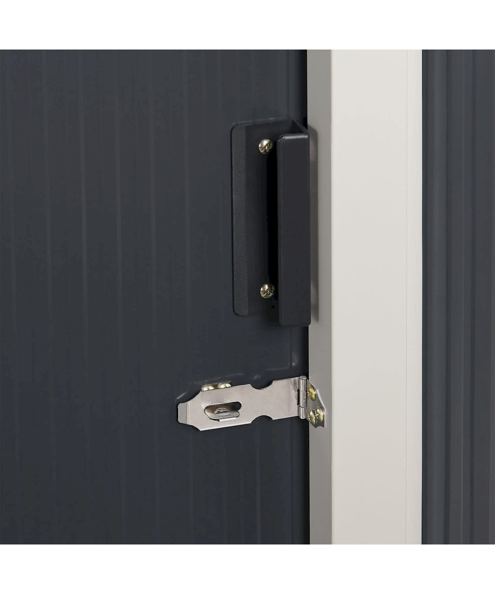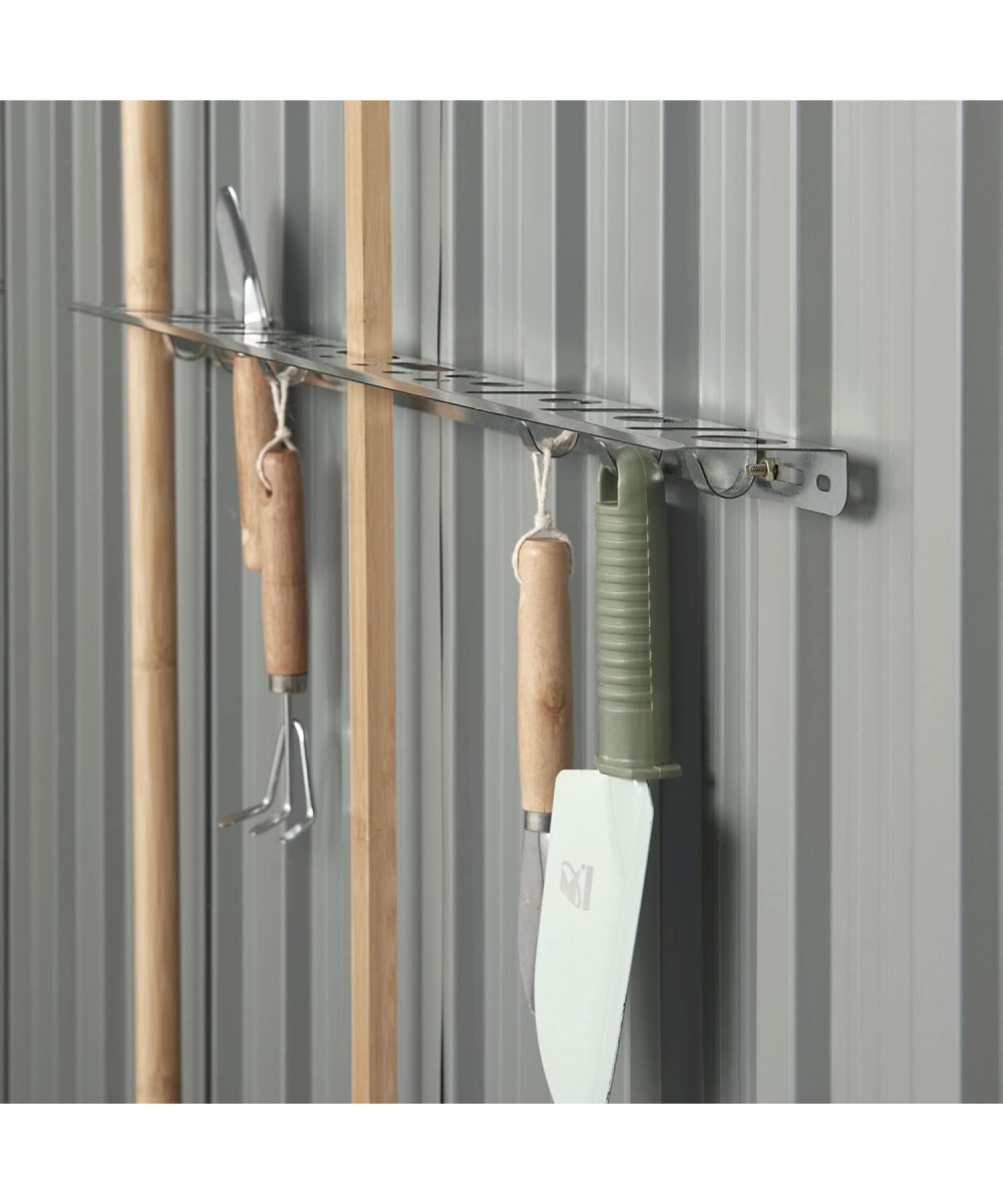 Im Metall-Gartenhaus lagern Gartenbesitzer / innen alles an einer Stelle, um den „unordentlichen Haufen Gartenkram“ sauber zu verstauen. Schaffe Ordnung auf kleinem Raum. An der praktischen Halterung für Werkzeuge kannst du deine Schraubenzieher und Gartenschere aufbewahren. - Wetterbeständig & pflegeleicht