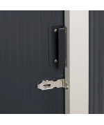| Material Gerätehaus | Metall, verzinkt, 0,25 mm Farbkarton; 0,5 bis 0,8 mm Zinkstahlrahmen |
