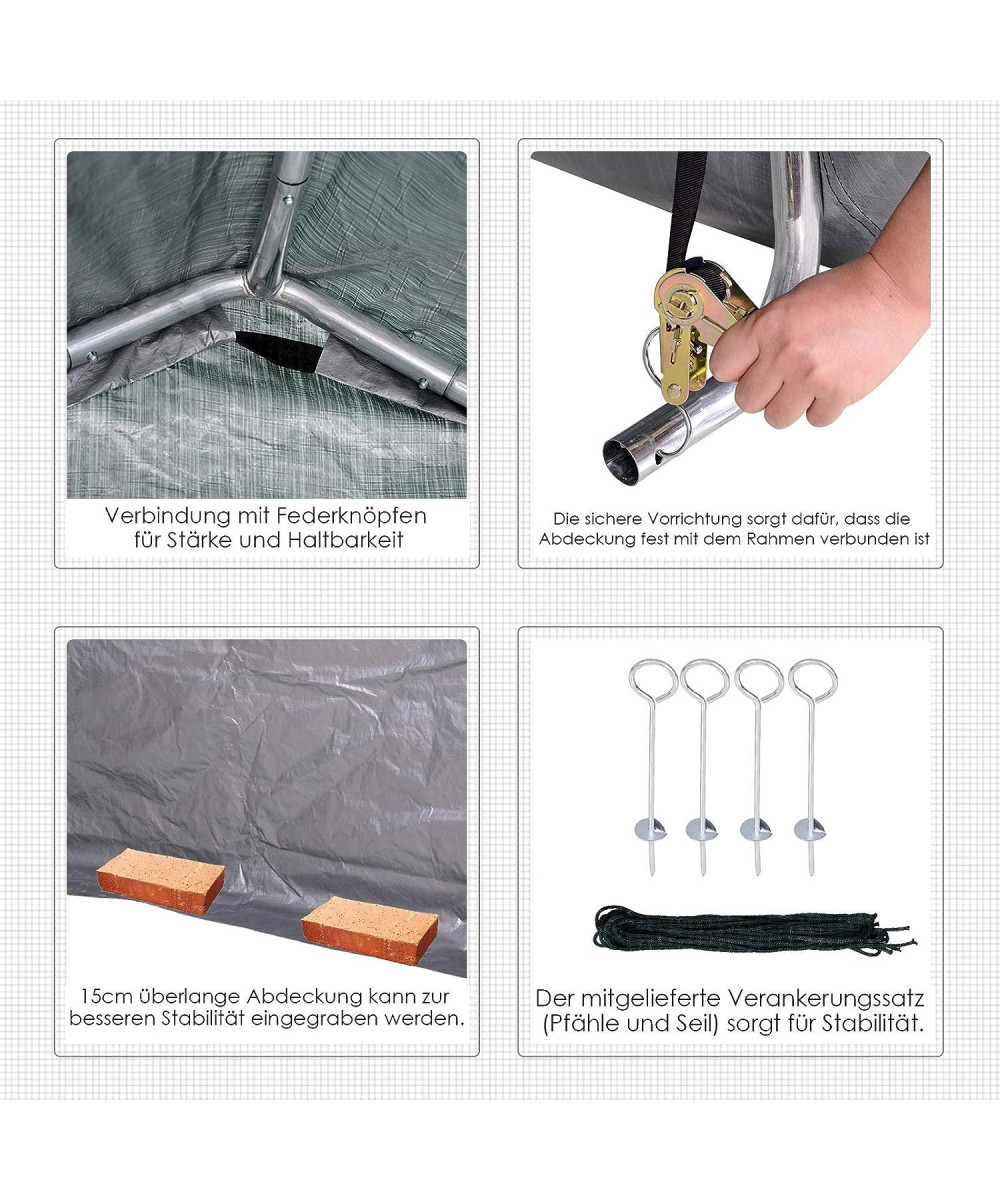 4 piquets d'ancrage au sol, 4 cordes à vent, 4 tendeurs