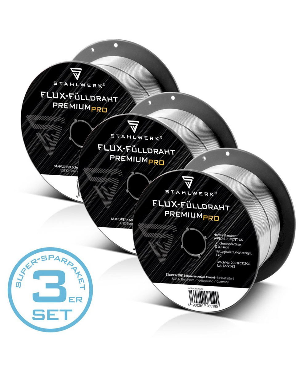 3x MIG MAG fil de soudage Premium - fil fourré E71T-GS Ø0,8mm 1kg