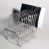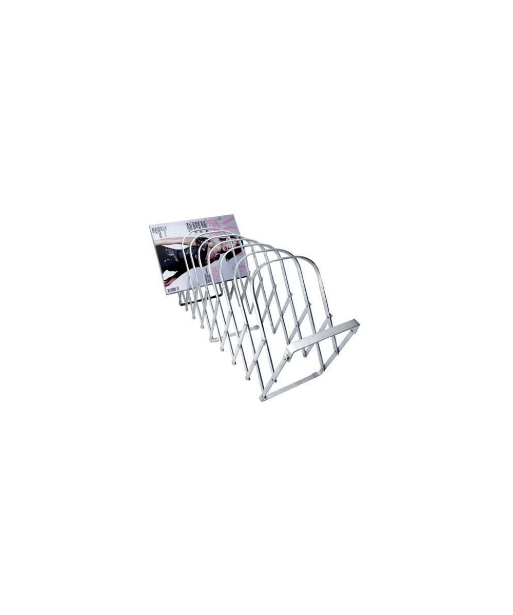 COLLATOR« est un porte-revues en filigrane et variable en aluminium pour cuisine, salle de bain ou pieces d'habitation. il peut etre place a plat sur le sol ou suspendu au mur et est disponible avec 10, 12, 18 ou 24 compartiments.