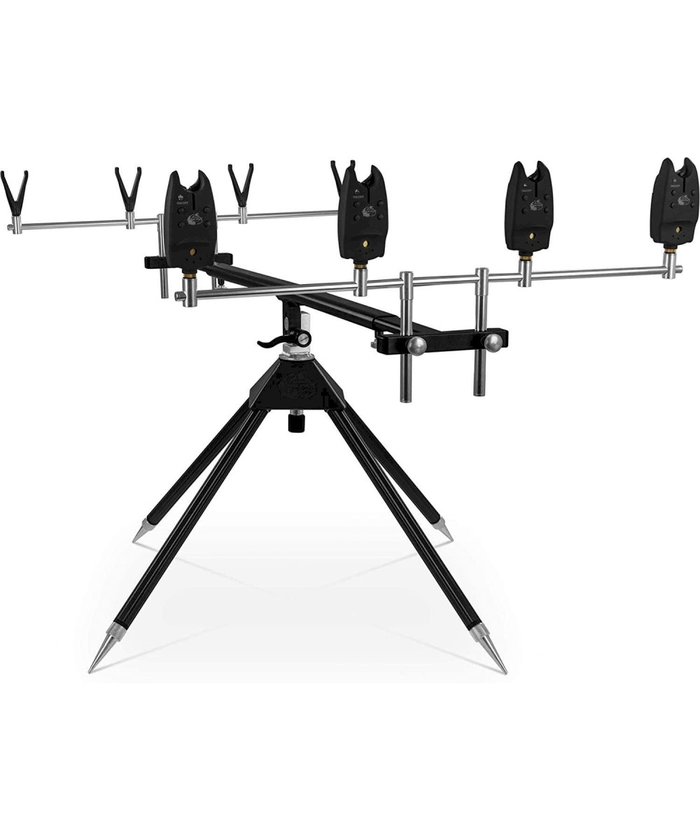 Normani Support pour canne à pêche Rod Pod avec détecteur de touche et support en V N oir