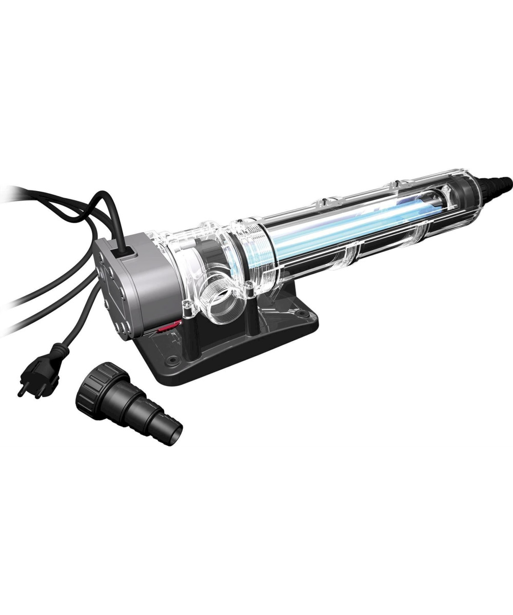 - Compris dans la livraison : appareil UV-C complet, câble 5m, lampe UV-C 36 W, culot 2G11, fixation mur, vis V2A, raccords à olive pour tuyaux flexibles de 12 à 40 mm. Garantie 2 ans (+2 en cas d'enregistrement du produit).
