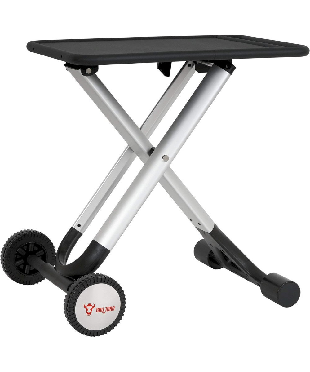 Le chariot de barbecue BBQ-Toro est polyvalent et peut également servir de table d'appoint. Posez votre gril de table sur l'étagère ou préparez vos aliments directement sur le gril. Le chariot latéral peut être plié facilement et permet un gain de place. Avec ses dimensions pliées de (L) 97 x (P) 51 x (H) 14 cm, la table s'intègre parfaitement dans un espace de rangement étroit ou une niche.