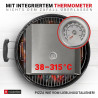 Mit einem Thermometer zum Überwachen der Hitze ist das kein Hexenwerk. Deswegen kommt das Pizzacover gleich mit einem fest integriertem daher. Hier lesen Sie auf einen Blick die aktuelle Temperatur von 38–315 °C ab.