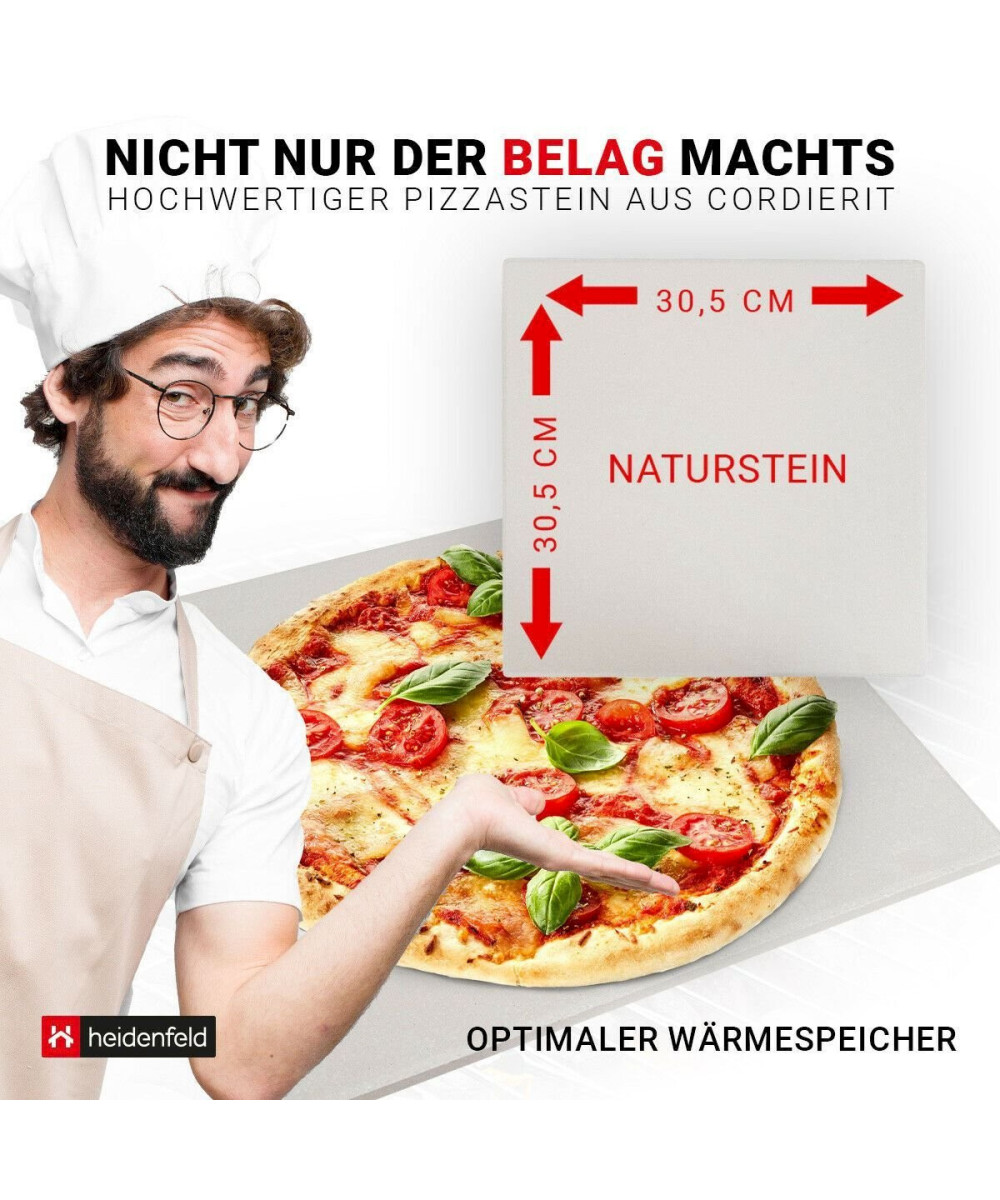 | Pizzastein (L x B x H): | Maße: 30.5 x 30.5 x 1.0 cm, Material: Cordierit |