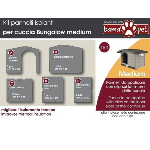 Kit d'isolation pour les mois froids de l'année pour la niche du chien BUNGALOW taille moyenne (89x75x62h cm).