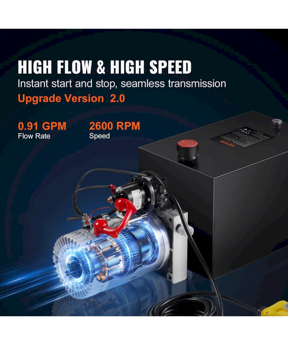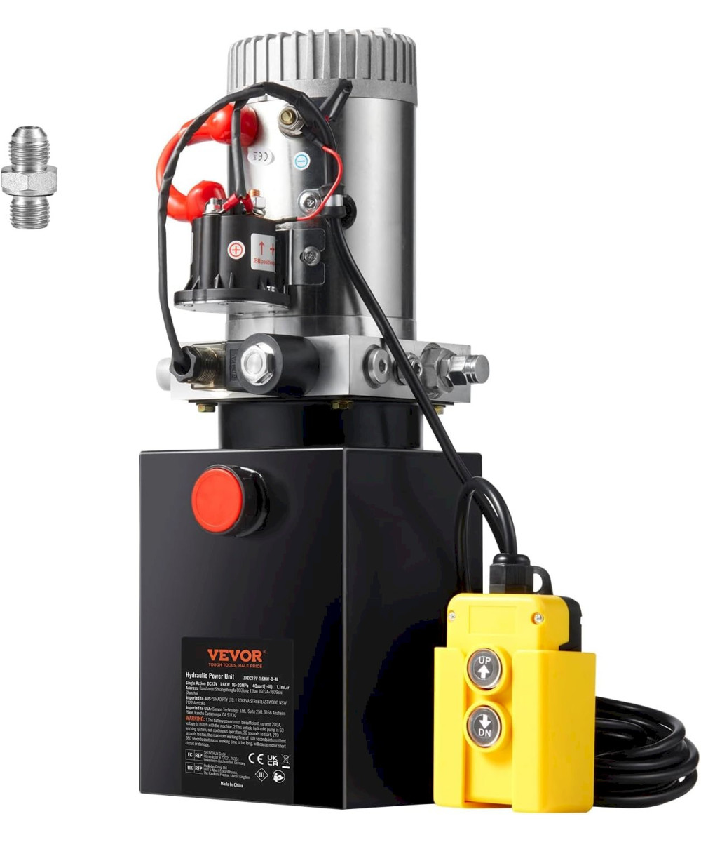 Einfache Installation: Die 12-V-Hydraulikpumpe wird vormontiert geliefert. Hydrauliköl einfüllen, Stromversorgung und Schläuche anschließen - fertig. Die VEVOR-Hydraulikpumpe hat einen SAE#6-Anschluss und ist somit mit metrischen und amerikanischen Schnittstellen kompatibel.