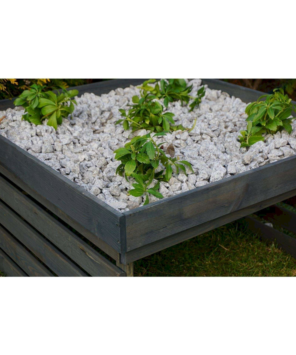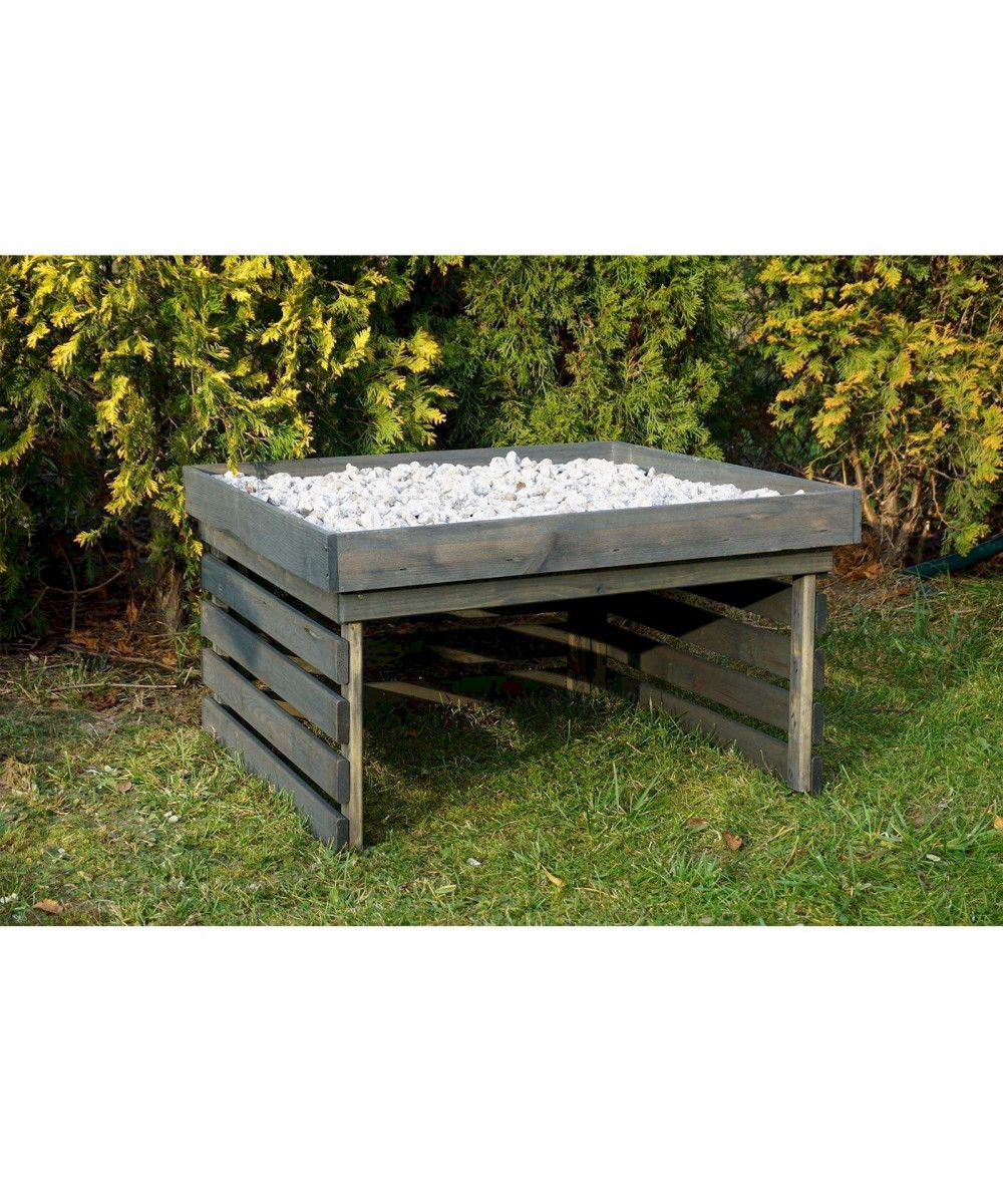 Cette maison en bois massif avec toit plat pour plantation offre à votre robot tondeuse un espace sec pour la station de chargement pour la batterie et protège en même temps contre le soleil et la pluie.