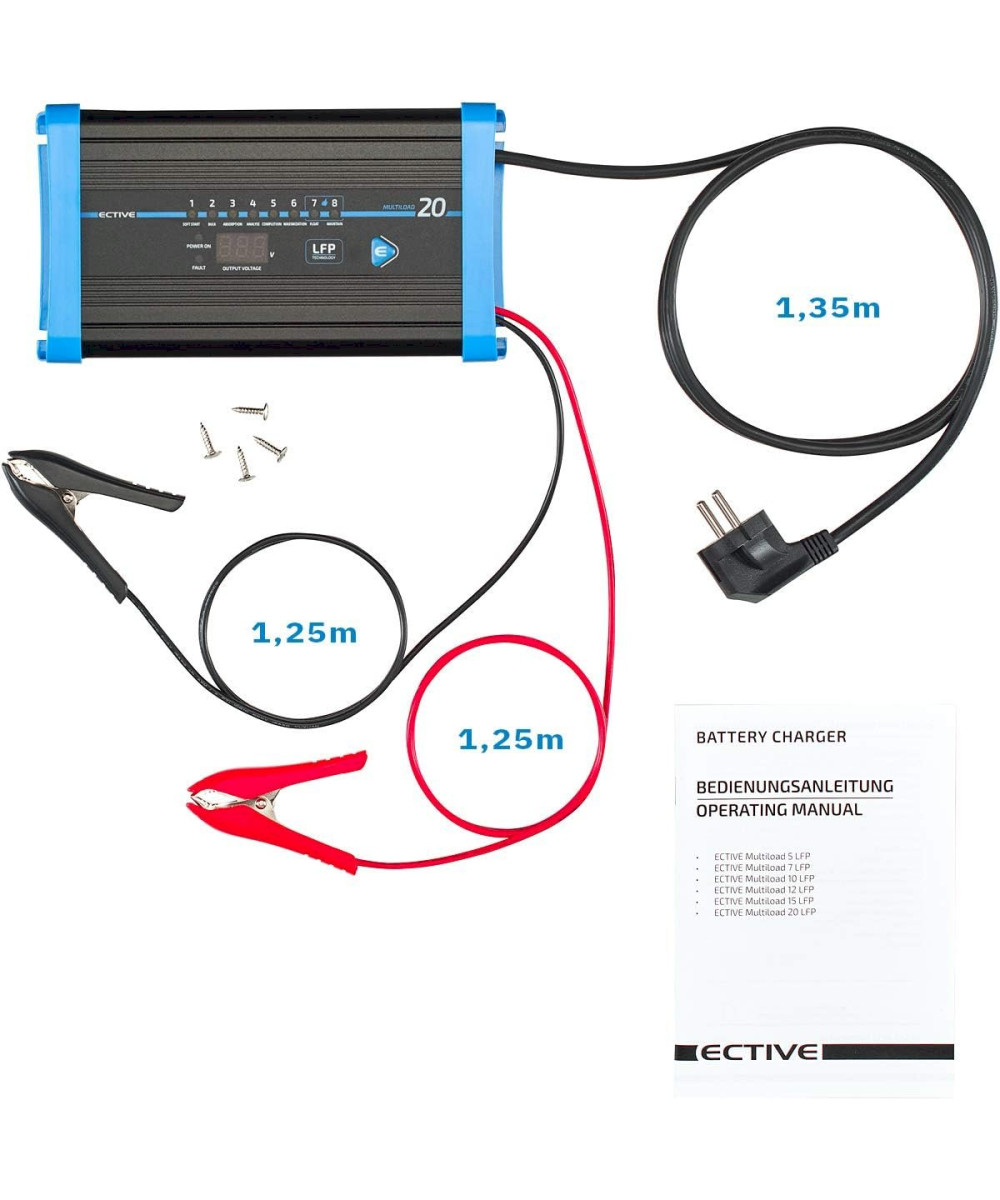 ECTIVE Multiload 20 LFP chargeur de batterie au lithium 20A/12V 8-étapes