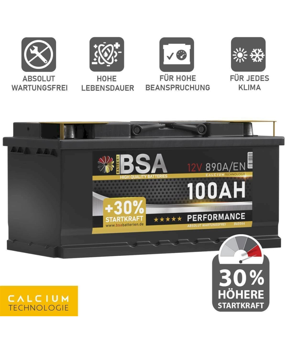 BSA Batterien bieten eine längere Lebensdauer gegenueber herkömmlichen Autobatterien und eine Top Leistung in den ersten Sekunden beim Starten des Fahrzeugs gegenüber handelsüblichen Blei-Säure-Batterien.