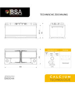 Durch die Calcium-Silver-Legierung der Bleizellen, die für +40% an extra Kaltstartkrarft zur verfügung stellen, sind BSA Batterien die erste Wahl für moderne Fahrzeuge. Aufgrund der ausgewogenen Technologie und 40% extra Leistung sind die BSA Batterien auch für Fahrzeuge mit umfangreicher Sonder- bzw. Zusatzausstattung geeignet.