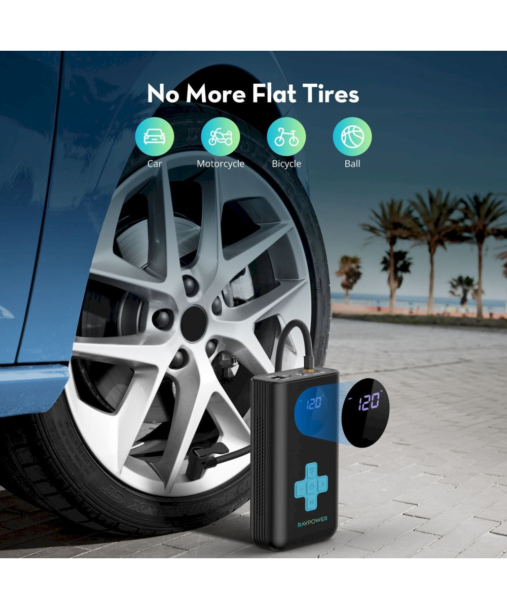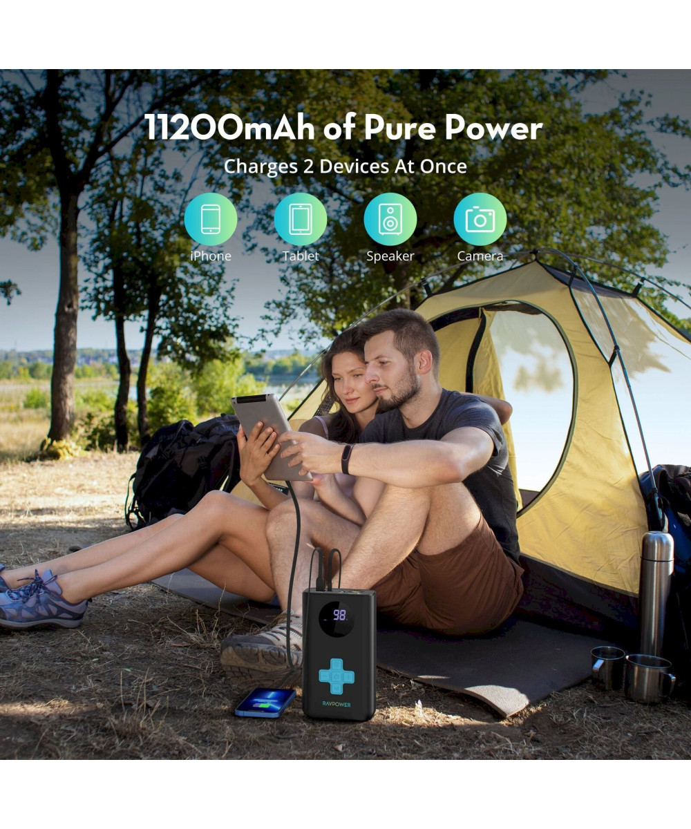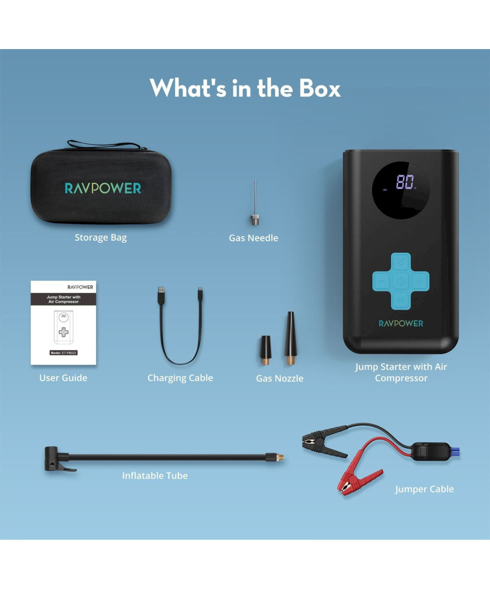 RAVPower Auto KFZ Starthilfe Jump Starter 1200A Powerbank Kompressor Luftpumpe Notleuchte
