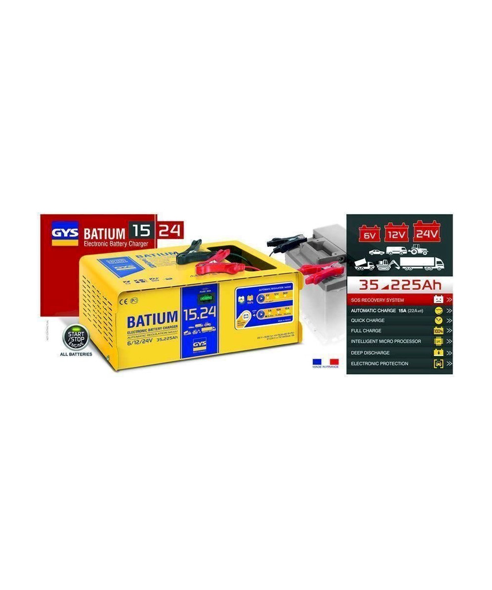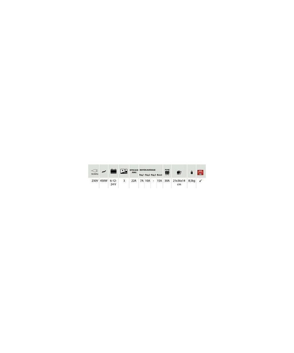 Chargeur automatique sans surveillance avec capacité de charge à 100% tous types de batteries au plomb 6/12/24V. Pour VL, PL ou tracteurs (batteries jusqu'à 225Ah). Protection de l'électronique embarquée. Inutile de déconnecter la batterie du véhicule pour une charge courante. Recharge même les batteries fortement déchargées et regénére les batteries en cours de sulfatation. Charge rapide grâce à sa courbe IwUoU.