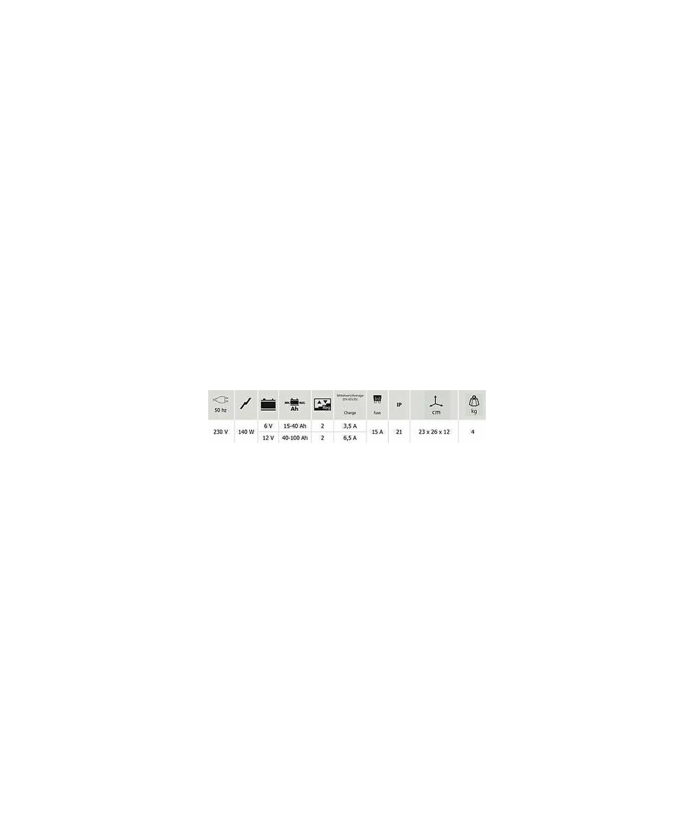 • Recharge les batteries au plomb à électrolyte Gel ou liquide à 100 % (Courbe WuoU) de 15 à 100Ah.