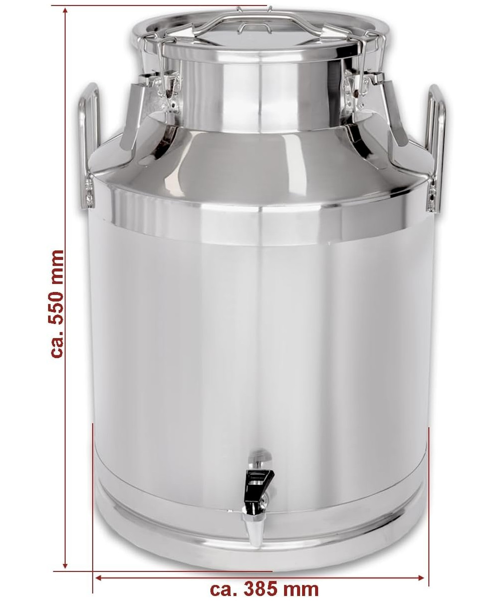 Beeketal BMK-50A Edelstahl Transport Milchkanne mit 50 Liter Fassungsvermögen und Ablasshahn, auslaufsicherem Spannverschluss Deckel mit Gummidichtung und Transportgriffen Die Beeketal Milch Transportkanne aus rostfreiem Edelstahl eignet sich für die Abholung, den Transport oder der Lagerung von Milch und anderen Lebensmitteln.