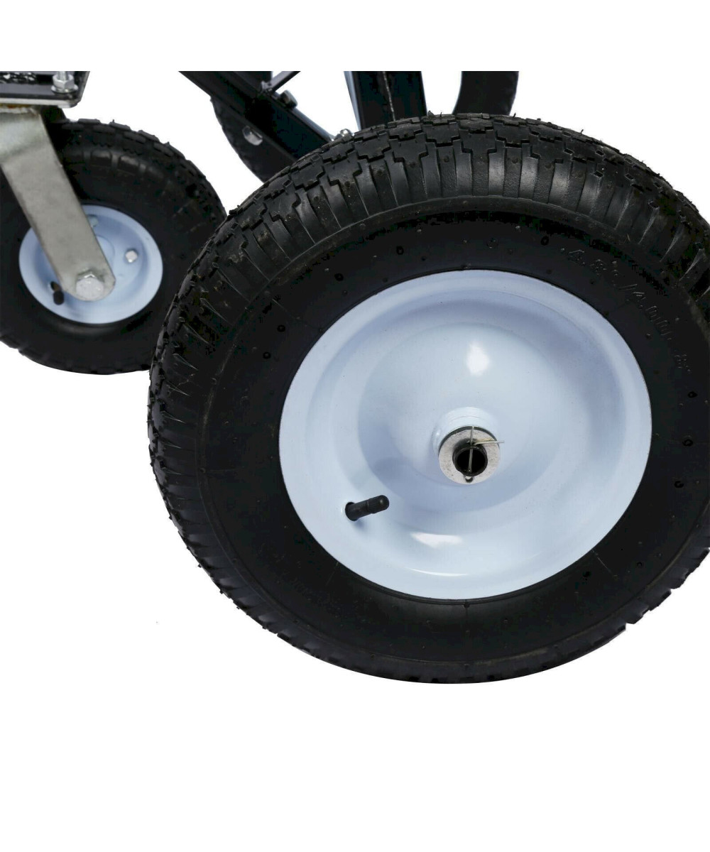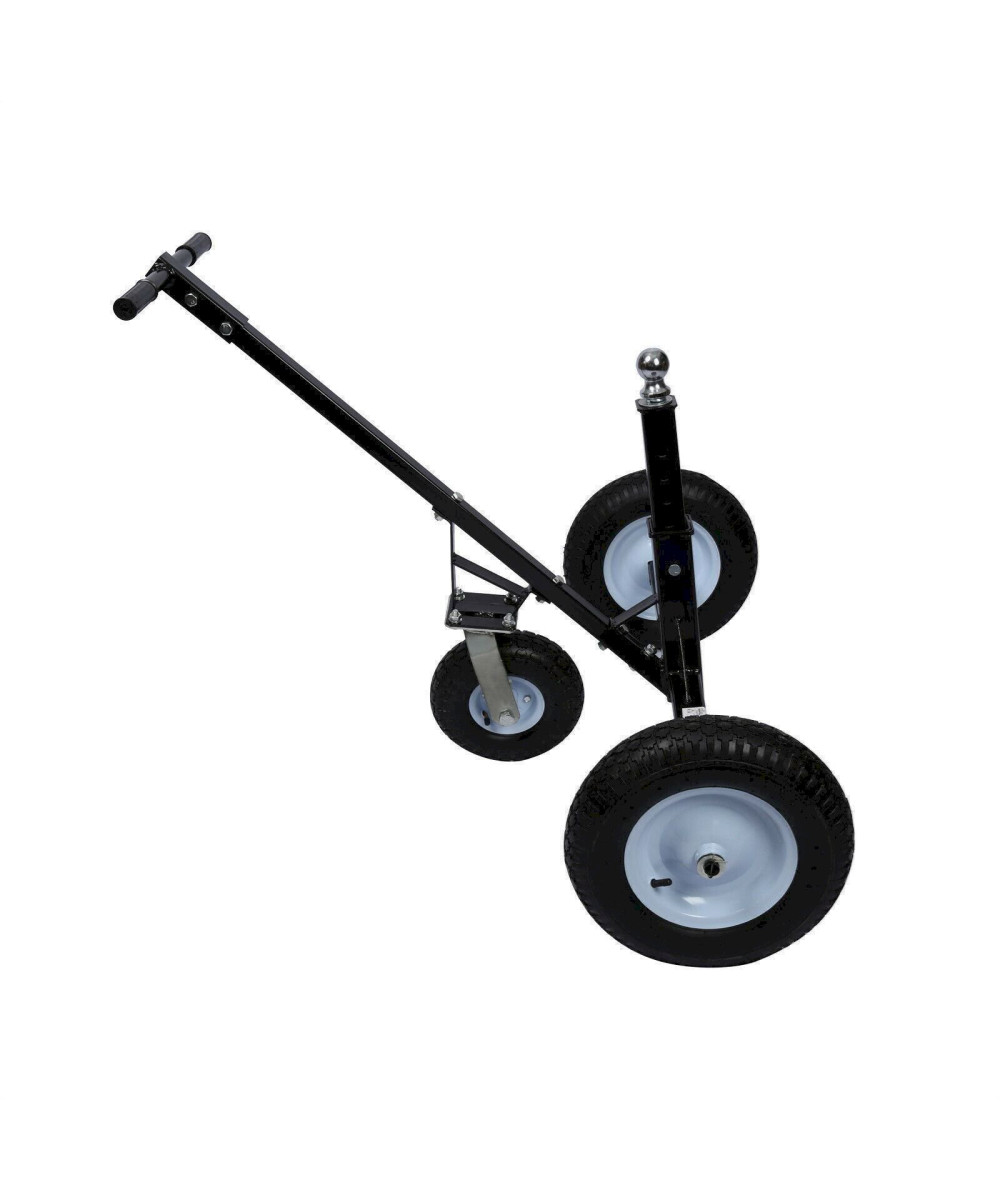 La construction est équipée de deux pneus d'environ 40,6 cm et d'une roue pivotante de 25,4 cm. Ceux-ci convainquent non seulement par leur énorme résistance, mais aussi par leur résistance à la perforation. La charge d'appui de l'aide à la manoeuvre est de 453,6 kg. Cela le rend idéal pour les remorques plus grandes et plus lourdes, comme les remorques à deux essieux. La boule d'attelage peut être réglée en hauteur de 53,4 cm à 88,9 cm selon les besoins.