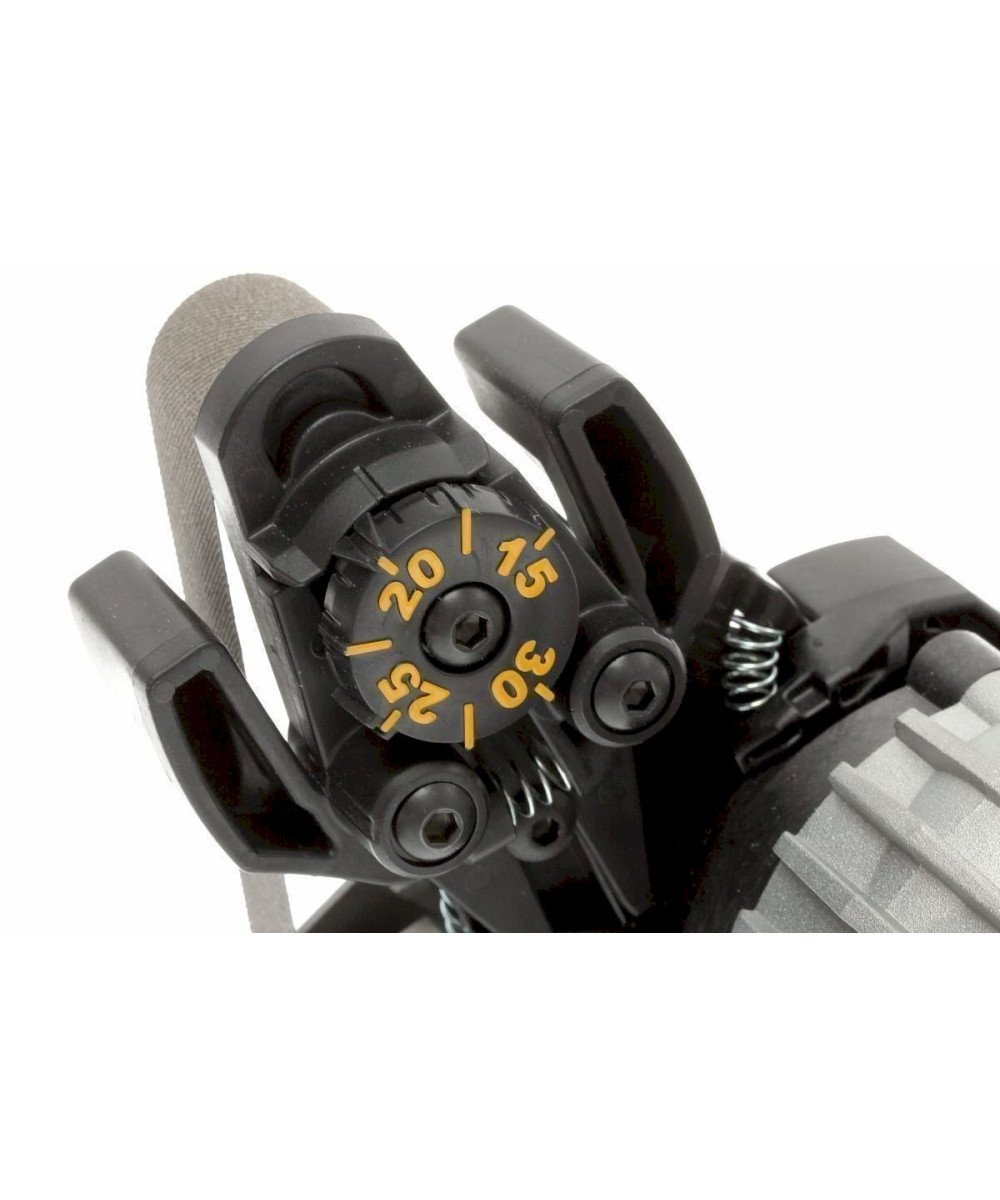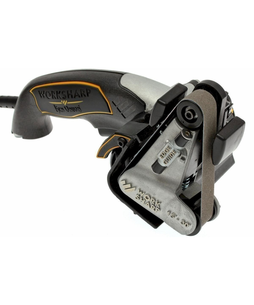 Cette machine de meulage électrique a également été conçue par le fameux dessinateur Ken Onion. Avec cette machine, chaque type de couteau peut être meulé. En plus des couteaux il est également possible de meuler des ciseaux et des haches, des crochets de tripes, des ciseaux et même des couteaux avec cannelures. Cette machine est en fait une petite machine de meulage professionnelle avec un système de guidage pour meuler des couteaux avec un angle entre 15 et 30 degrés. Cela permet une couverture suffisante pour meuler les très fins couteaux de cuisine japonais et pour les couteaux plus épais extérieurs. Le grand avantage du meulage sur bande abrasive est que grâce à la flexibilité de la bande vous meulez un pli relativement convexe dans votre tranchant. Ceux-ci sont plus robustes que les droits de par exemple une meule. En plus, un couteau avec lame courbée et très facile à meuler sur le Work Sharp Multi Sharpener. Sur une meule cela peut être un problème.