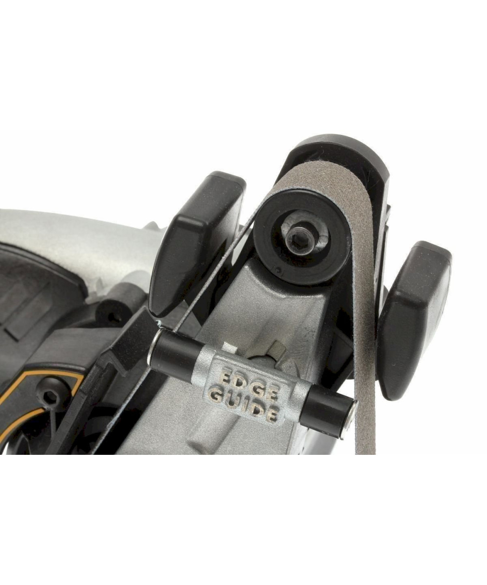 La machine est extrêmement stable, ce qui dans des appareils similaires peut être différent. En plus, c'est un appareil très flexible. Évidemment, les bandes de meulage sont facilement interchangeables, ce qui est important, car pendant tout le procès de meulage, il faut meuler avec des bandes différentes. Un autre point qui distingue ces machines, est le système de guidage. Grâce à celui-ci l'on peut établir l'angle de meulage. Grâce à la suspension de ressorts vous devez meuler avec peu de force. En fait, le poids du couteau doit être suffisant. Le rouleau giratoire (edge guide) sur lequel le couteau peut reposer, aide au guidage. Si vous préférez travailler sans (par exemple parce qu'un support de pouce ennuie) celui-ci est facile à éliminer.