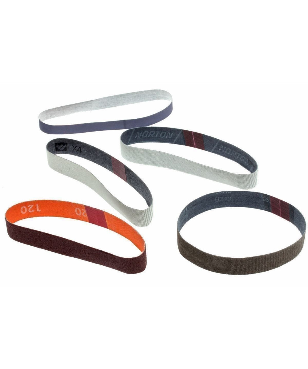 Par exemple pour meuler une hache ou si vous préférez meuler à la main, l'unité de meulage est facile à éliminer. La tête avec bande de meulage peut être tournée pour arriver facilement à une hache horizontale avec la bande de meulage. En plus, la vitesse de la bande peut être établie sans échelles et la machine peut être en permanence utilisable avec un blocage. Vous travaillez toujours de la manière qui vous convient le mieux. La meule est livrée ensemble avec un set de cinq bandes de meulage. La grosseur de grain varie de très grossière (environ 120) à très fine (environ 6000). Les bandes de meulage sont en fait identiques aux bandes que Ken Onion utilise sur sa machine de meulage full size. Les grains de la bande se réduiront lentement pendant l'utilisation pour que de nouveaux grains apparaissent. Cela signifie qu'en fait vous meulez toujours sur une bande fraîche. Cela continue jusqu'à ce que le porteur de la bande devienne visible. Alors, il faut changer la bande. Dans la pratique cela dure plus longtemps que vous ne l'espérez.