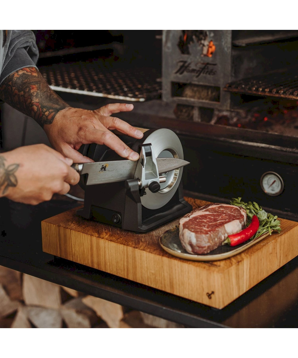 Démorfilez et polissez le couteau sur le disque de démorfilage pour obtenir un tranchant rasoir. Parfait également pour l'entretien de vos couteaux entre les aiguisage.