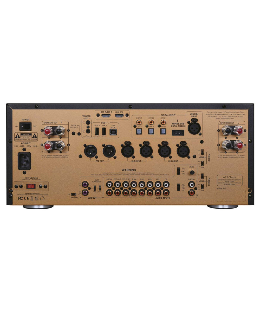Dans la grande tradition d’Advance Paris de concevoir des produits avec de nombreuses connectiques, le A12 Classic ne déroge pas à la règle… De HDMI à Phono (MM/MC), RCA analogique à AES-EBU, de l’USB pour ordinateur à de multiples entrées optiques et coaxiales, 2 zones d’enceintes, Bluetooth (en option avec X-FTB01 / X-FTB02).