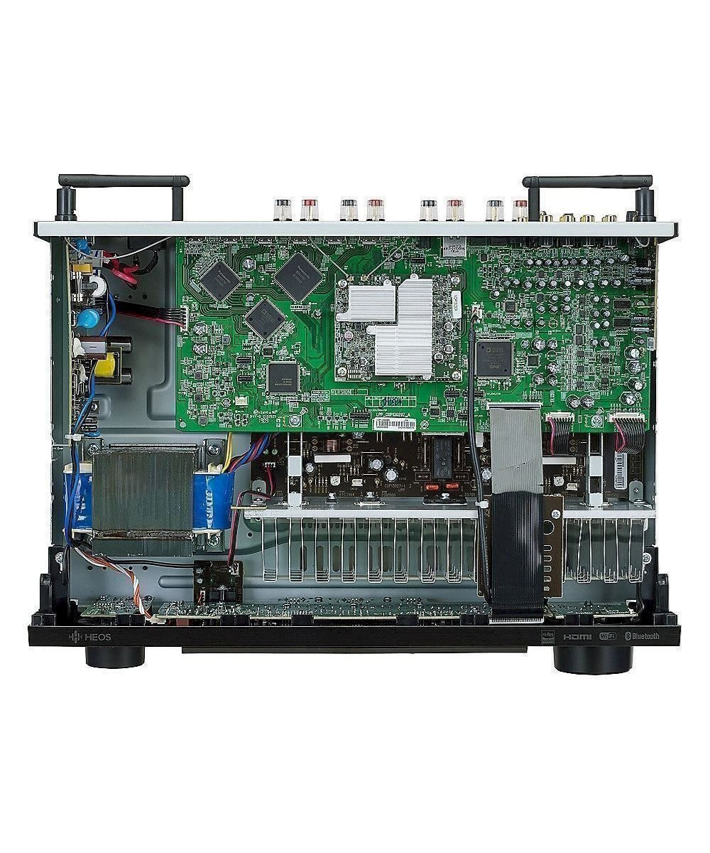 DRA-800H, une connectique de choixSa connectique permet également une grande liberté dans le choix des systèmes sonores qui lui seront branchés : il propose deux jeux de borniers pour enceintes A et B, ce qui permet d'installer deux paires d'enceintes dans la même pièce ou dans deux pièces différentes, avec la possibilité d'écouter la musique simultanément sur une seule paire ou sur les deux à la fois. Sa zone 2 pré-amplifiée permet même d'écouter deux musiques différentes si on la couple avec des enceintes de monitoring ou un amplificateur de puissance, idéal pour créer deux ambiances sonores différentes dans deux pièces de la maison. Il permet également de brancher un ou deux caissons de basses grâce à ses deux sorties Subwooter pré-amplifiées.Denon Heos, Alexa, Google Assistant et SiriMais cet amplificateur connecté ne s'arrête pas à cela : le Denon DRA-800H se distingue aussi par sa multifonctionnalité et s'adapte donc à tous les usages. Il est compatible avec le système audio multiroom Denon Heos, ce qui permet de diffuser dans toute la maison, sans fil, à partir de ce point central. Il peut aussi être couplé avec les trois principales technologies de contrôle vocal du marché : Amazon Alexa, Google Assistant et Apple Siri. Si vous disposez de ce matériel, vous pouvez lui demander à la voix de mettre un morceau de musique, de monter le volume, de diffuser une webradio via TuneIn et bien d'autres choses encore. Si vous n'avez pas d'assistant vocal, il dispose aussi d'une application qui permet de le contrôler très facilement.Denon DRA-800H : Utilisation Hifi et Home-cinema !Le point fort de cet ampli connecté DRA800H est de pouvoir brancher tous vos appareils dessus : résolument moderne, le DENON DRA-800H propose cinq entrées et une sortie HDMI compatibles 4K (et ARC+CEC). Tourné vers une utilisation home-cinéma sans enceintes arrières (2.0, 2.1 ou 2.2) mais n'oublie pas non plus les mordus de vinyls avec son entrée phono pour platine. Il est conçu pour permettre la meilleure fluidité d'image possible lorsqu'il sert de relais entre une télévision 4K et un lecteur Blue-Ray ou une console de jeu vidéo et dispose pour cela d'un ALLM (Auto Low Latency Mode).Il devient très facile de lire des formats audio de haute qualité : les appareils connectés avec lui sur le réseau local ou branchés à son port USB peuvent bénéficier de la capacité de conversion de cet ampli. En effet, le Denon DRA-800H décode les formats de fichiers numériques et analogiques audio de haute résolution (FLAC, WAV, ALAC) grâce à ses convertisseurs 32 bits AKM AK4458.