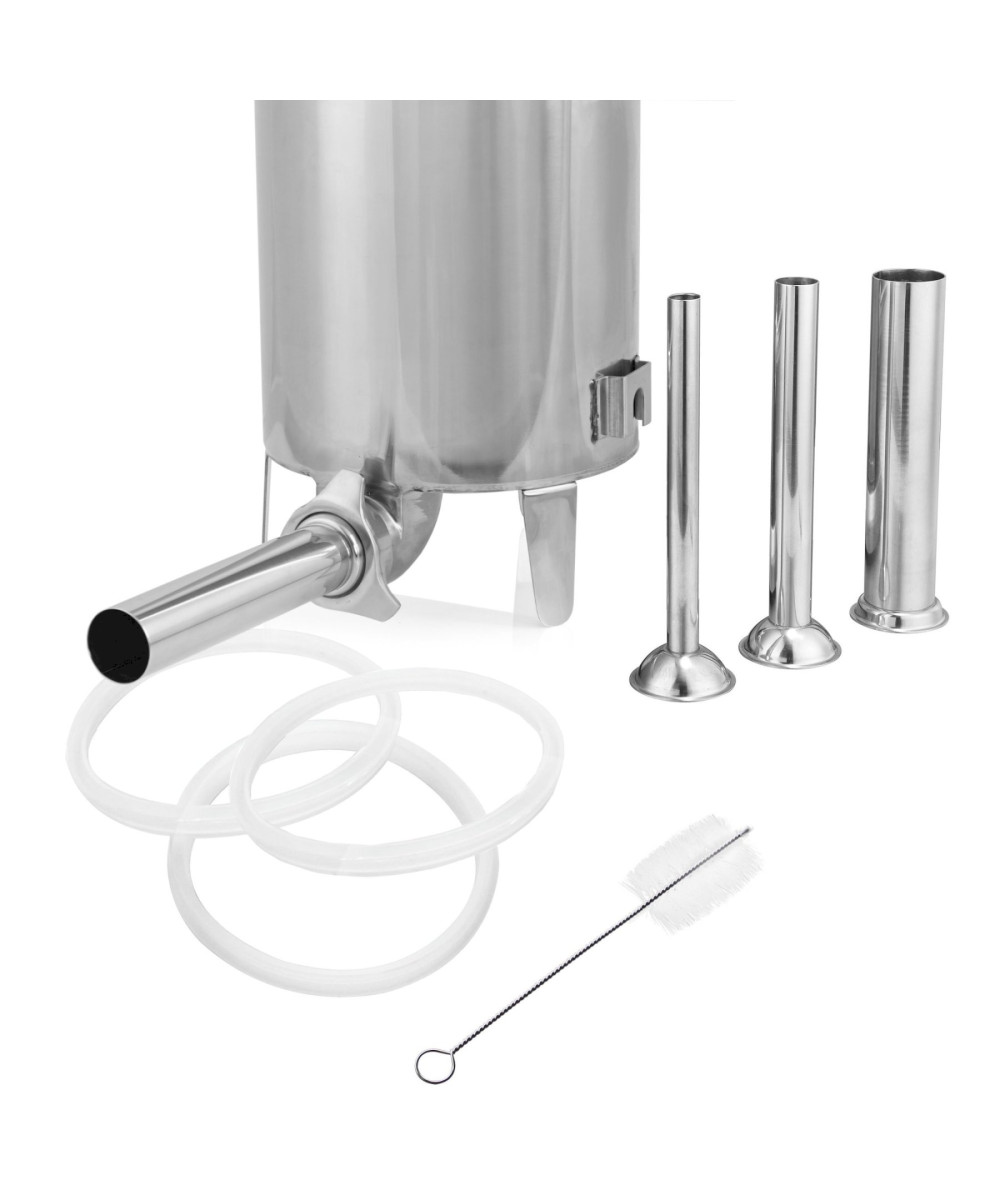 L'embossoir à saucisses est livré avec quatre tailles différentes de tubes de remplissage, une brosse de nettoyage et trois joints d'étanchéité de rechange.