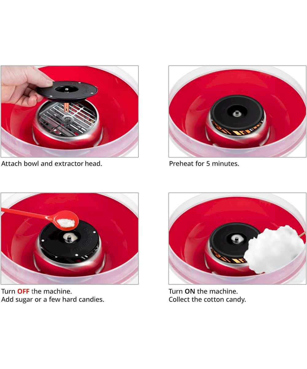 Maintenant, grâce à la machine à barbapapa CFM-500, tu peux te remémorer à la maison ces moments extraordinaires de ton enfance. Deviens toi-même un confiseur et tourne ta montagne de sucre ou crée un nouveau goût exceptionnel. Eveille la magie.