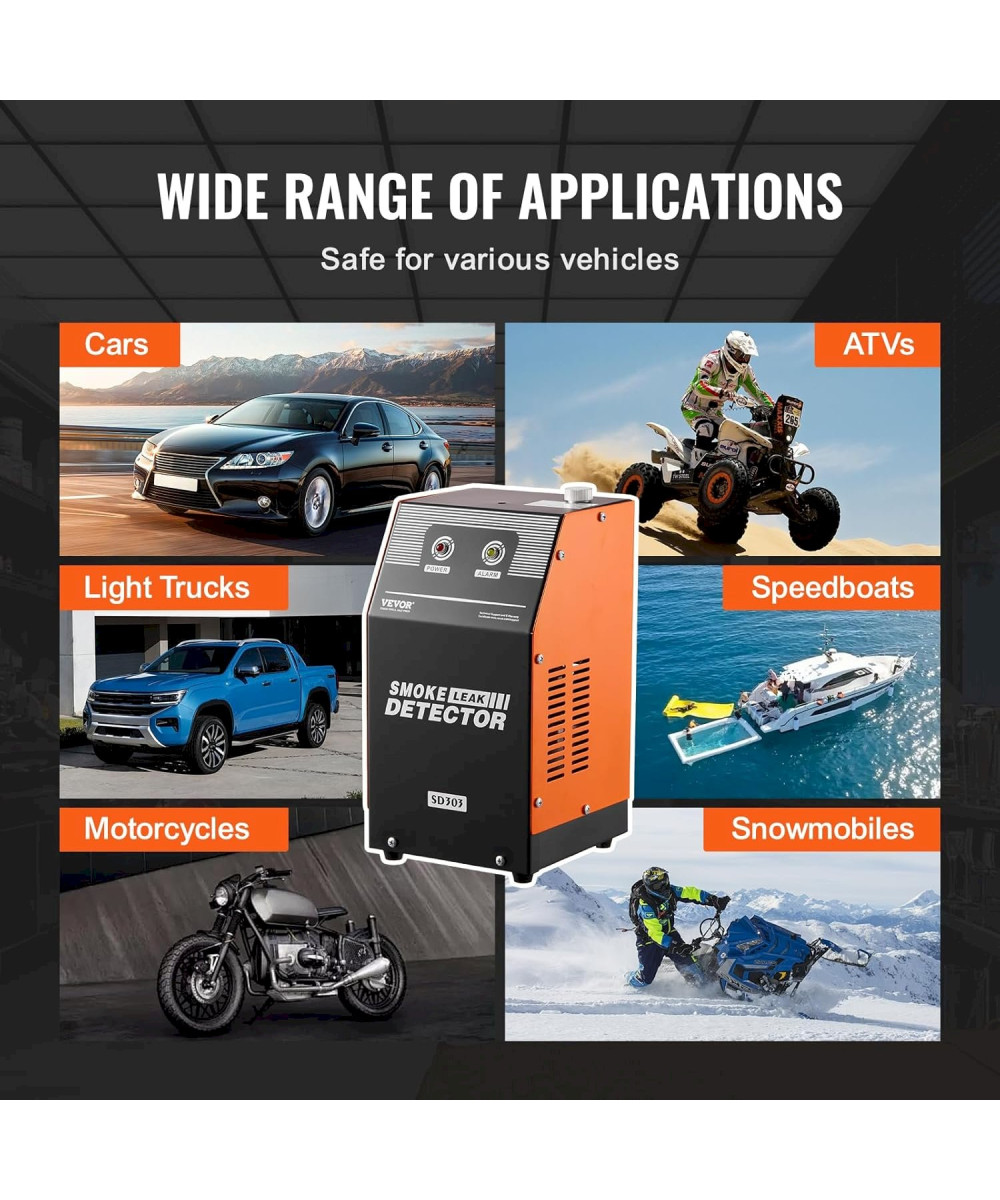 Tests polyvalents, une seule machine pour tous : le détecteur de fuite de fumée automobile VEVOR excelle dans divers tests, notamment le système EVAP, le système de réservoir de carburant, le système d'échappement, le système d'admission, le test d'étanchéité de la voiture et divers problèmes de fuite de raccords de tuyauterie. Idéal pour les voitures, les motos, les VTT, les camions légers et les hors-bords, c'est votre solution tout-en-un pour un diagnostic complet des fuites de véhicules.