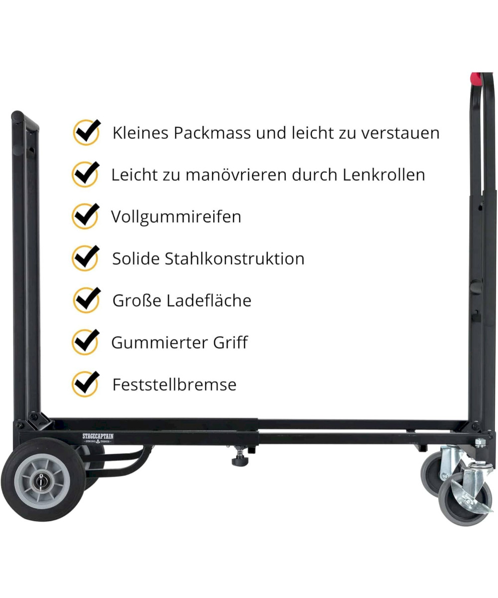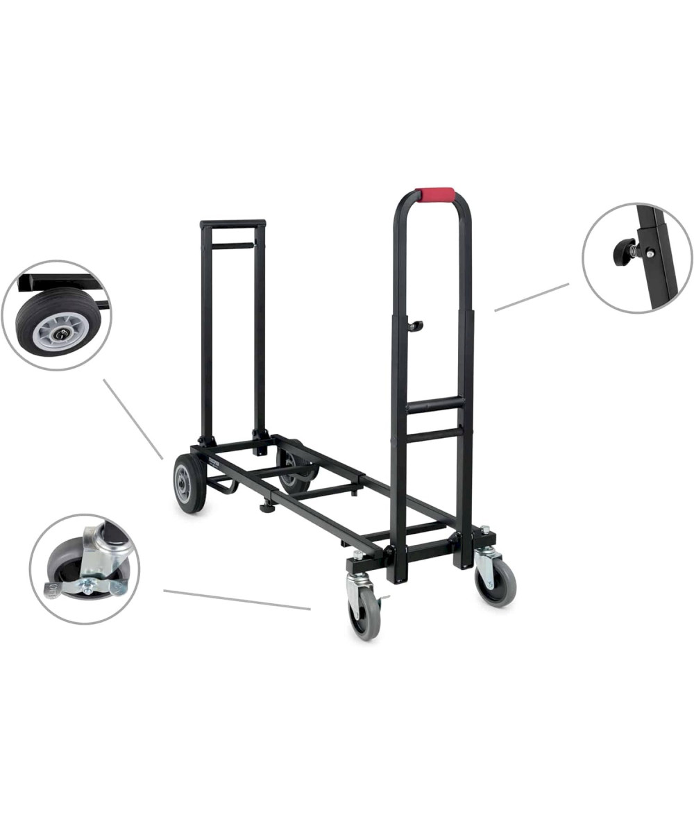 Avec la série Sherpa, Stagecaptain propose des chariot de transport innovants qui se posent aussi bien sur scène que dans le studio, par exemple. exemple pour le transport d'ampères, d'enceintes PA et de chaudières à percussions, mais aussi idéal pour les entrepôts ou les déménagements. Grâce au chargement pratique, vous n'aurez plus à transporter vos bagages et à manger lors de festivals.