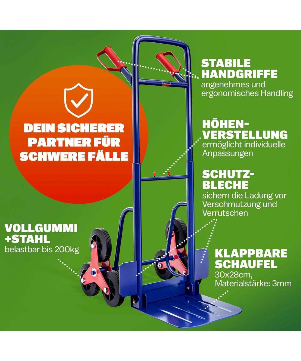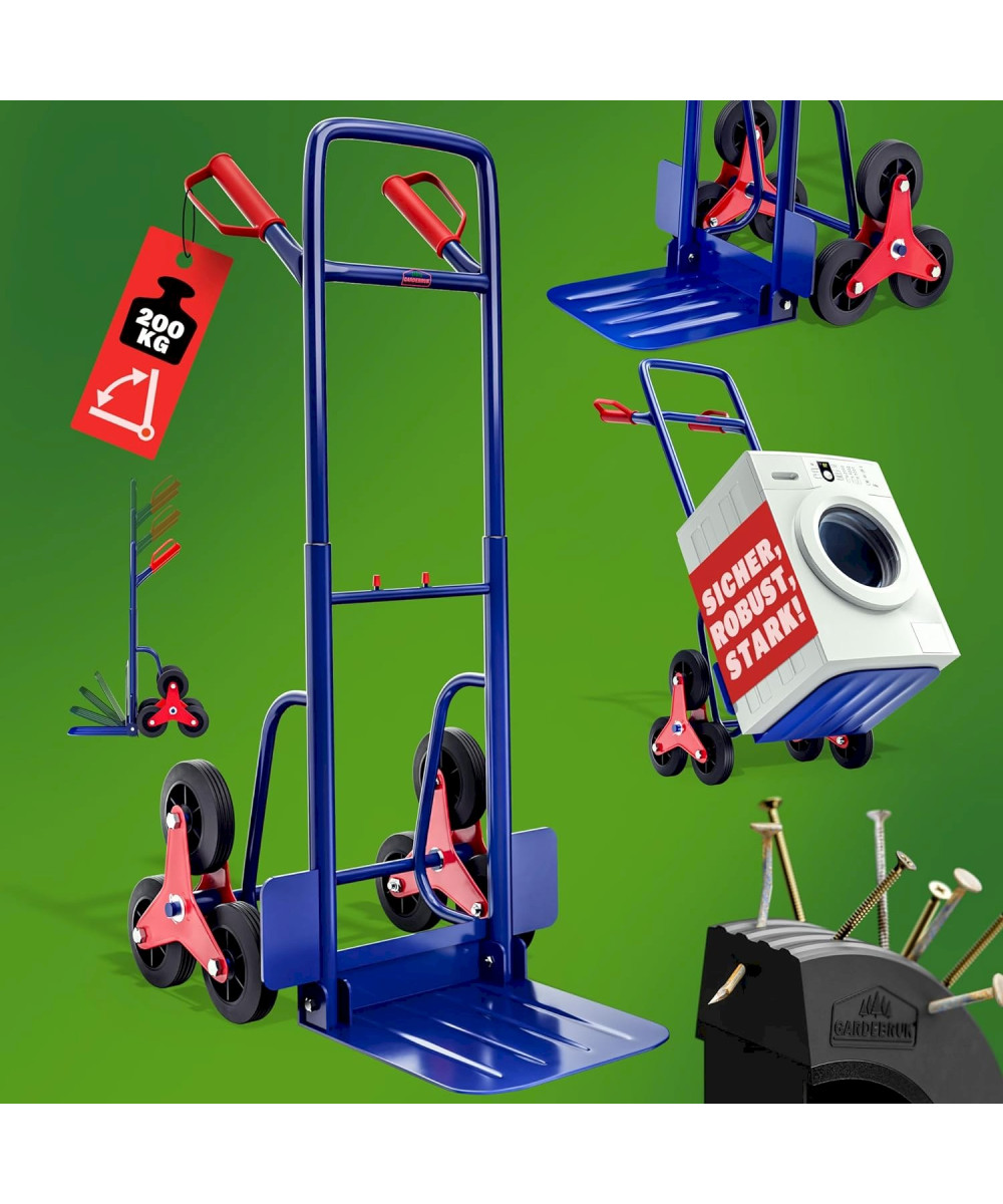 Gardebruk Diable d'escalier 200kg repliable extensible 3 roues
