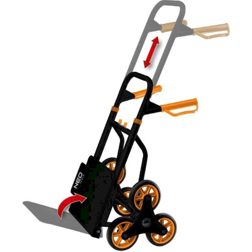 Le diable monte escalier pliant Neo 84-402 est un équipement fonctionnel qui fera ses preuves lors du transport de charges sur des surfaces planes, ainsi que dans les escaliers. Le chariot a des roues triples adaptées à différentes surfaces. Les roues sont protégées par un cache métallique, qui sert également de support aux charges transportées. Les avantages du modèle 84-402 comprennent également: des poignées réglables en hauteur, la possibilité de plier le chariot pour le rangement et des poignées ergonomiques avec protection des doigts, recouvertes de plastique.