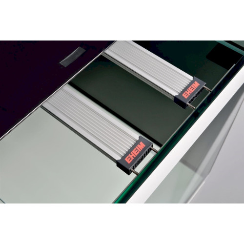 L'éclairage placé sous le couvercle de l'aquarium est facilement accessible. La combinaison des 2 rampes EHEIM PowerLed+ Daylight (49 Watts) et Plant (43 Watts) émet un spectre qui favorise la photosynthèse de vos plantes aquatiques tout en mettant en valeur l'intérieur de votre aquarium.