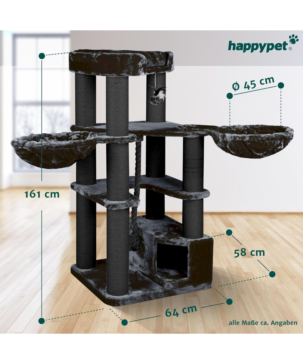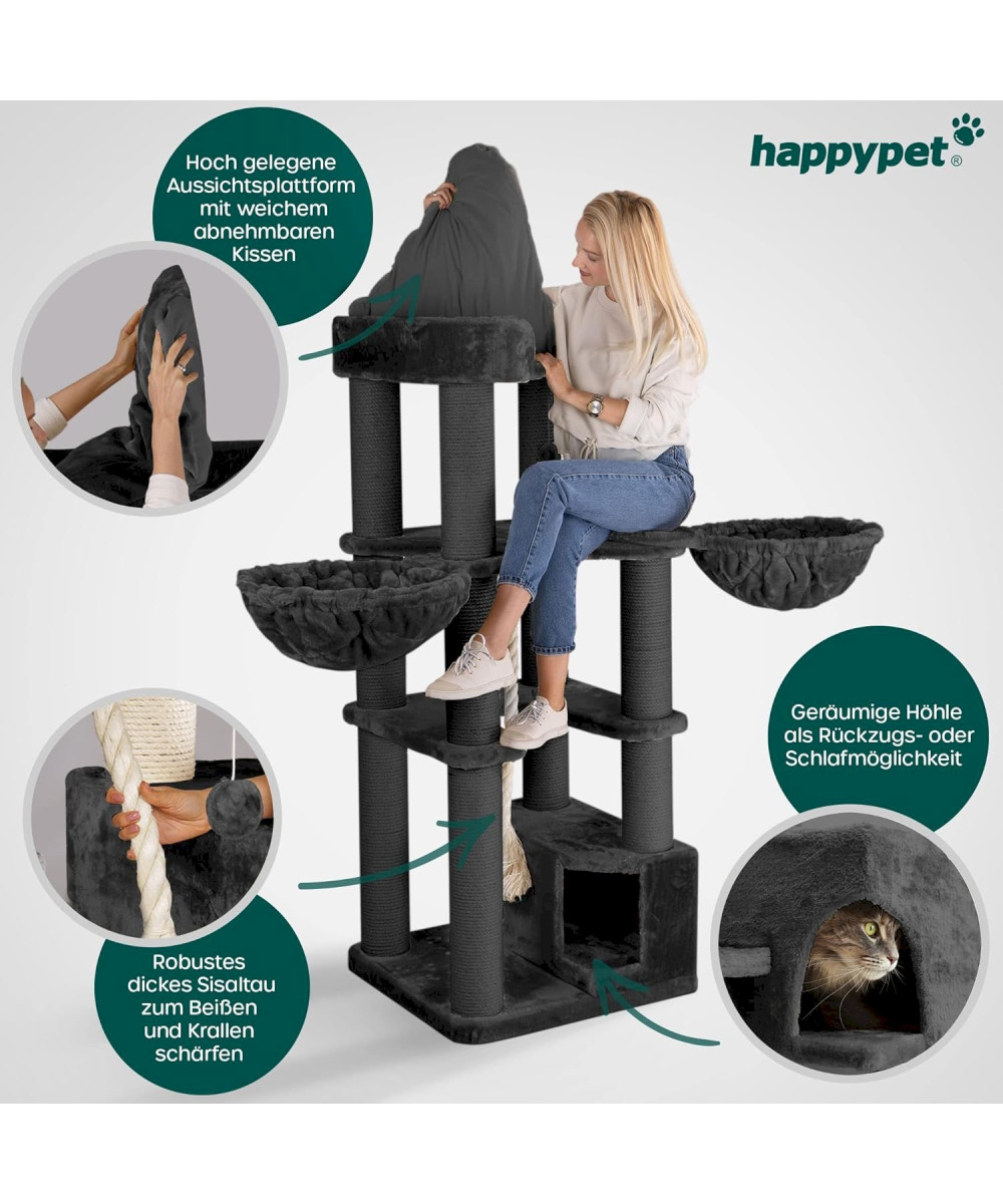 HAPPYPET Oscar Premium arbre à chat 161cm pour les chats de grande taille anthracite