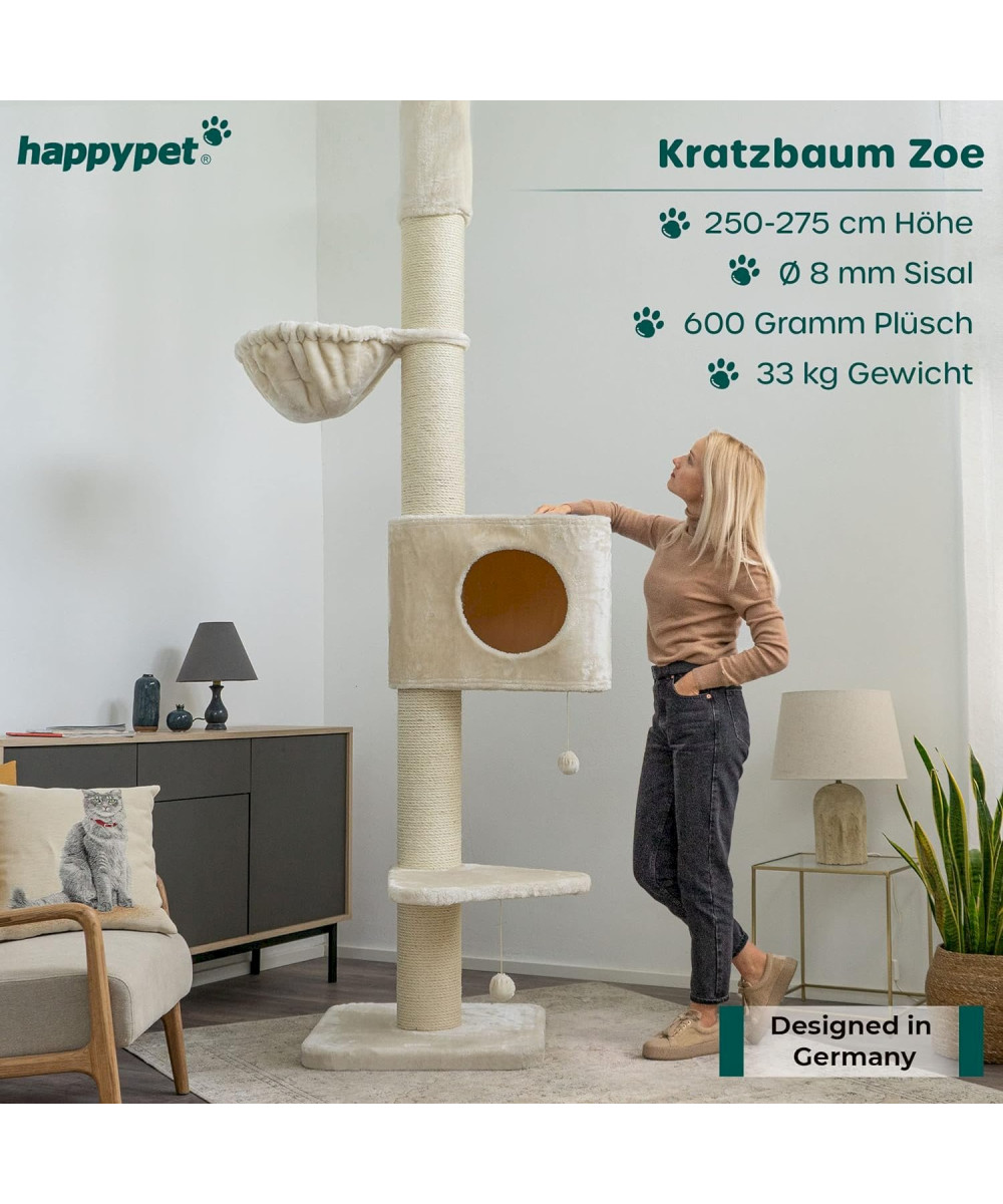 - Robuste XXL Kratzsäule höhenverstellbar von 250 bis 275 cm