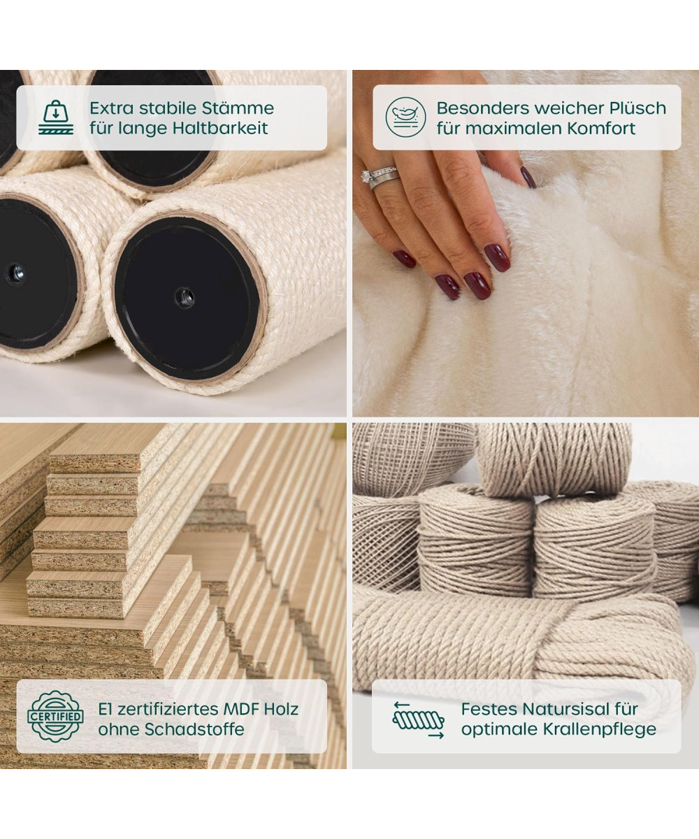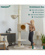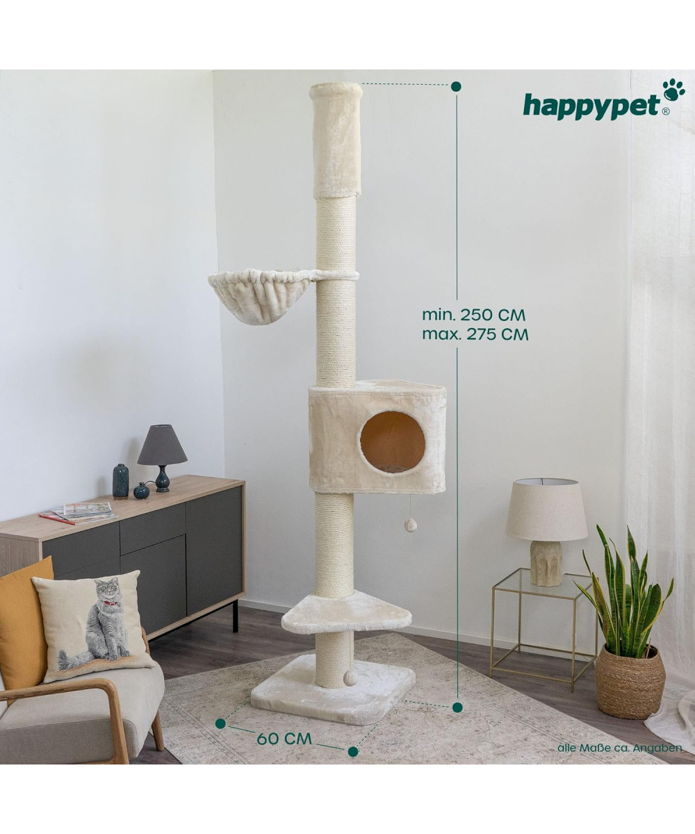 Arbre à chat hauteur plafond 250 à 275 cm pour grands chats jusqu'à 20 kg crème