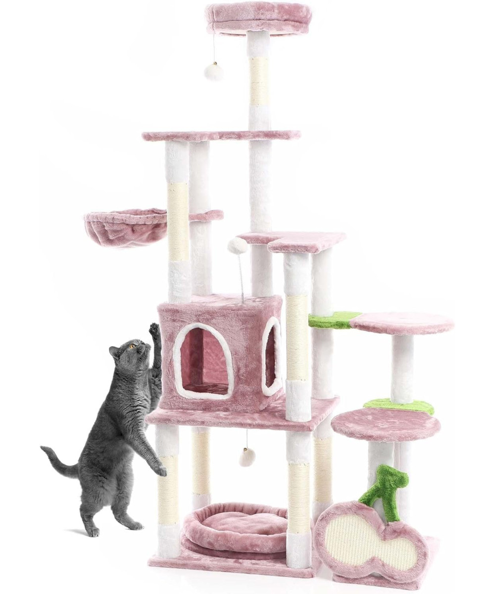Fudajo Arbre à chat rose « Cerise » de 162 cm