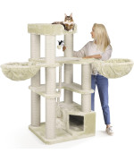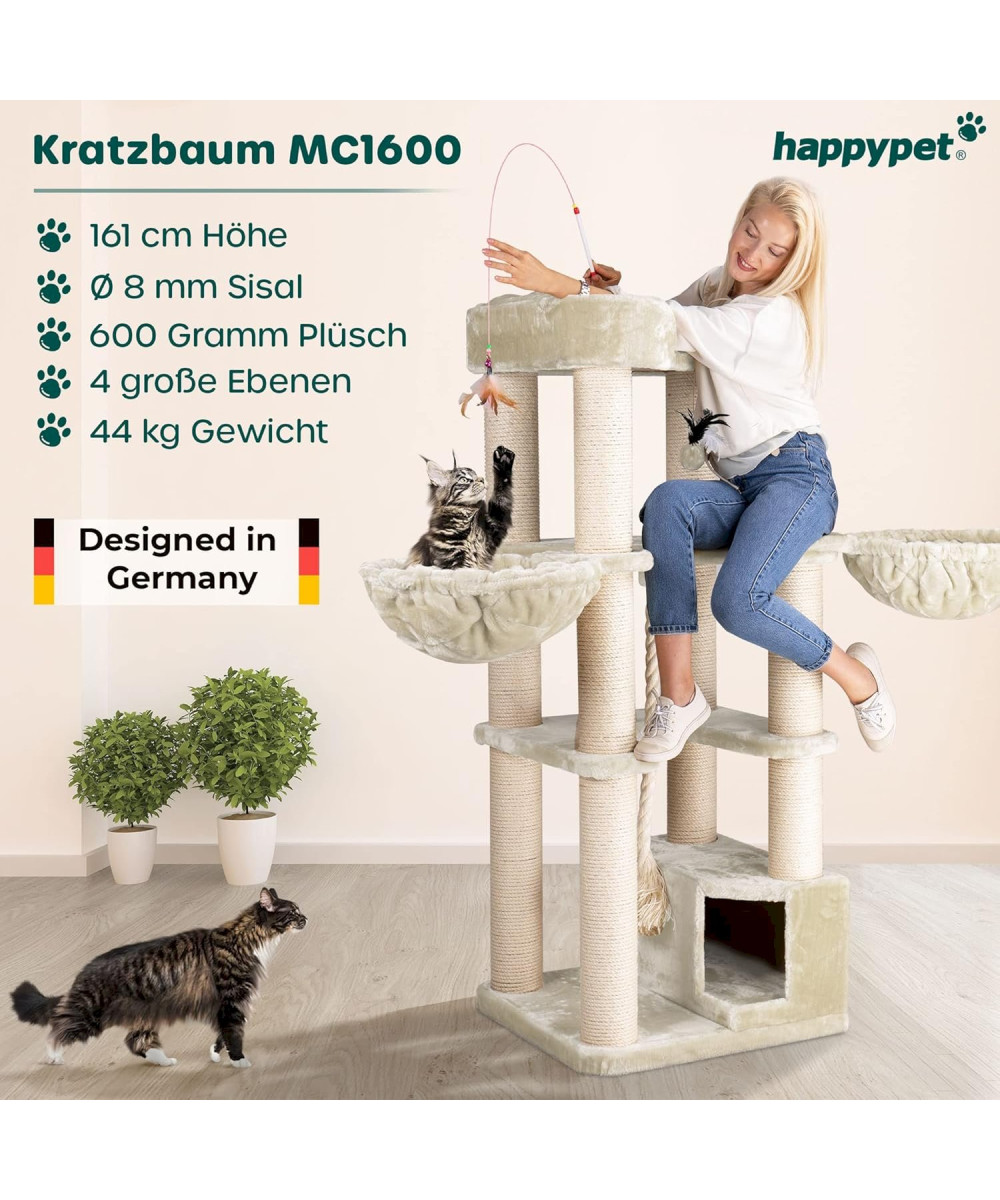 HAPPYPET Oscar Premium arbre à chat 161cm pour les chats de grande taille crème
