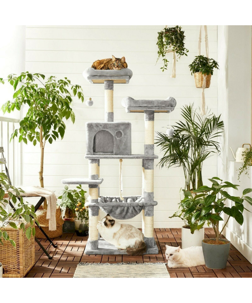 FEANDREA Arbre à Chat Hauteur de 143 cm, Gris Clair PCT15W