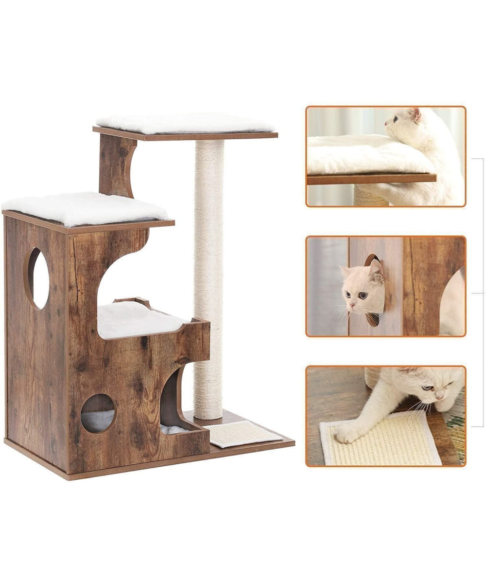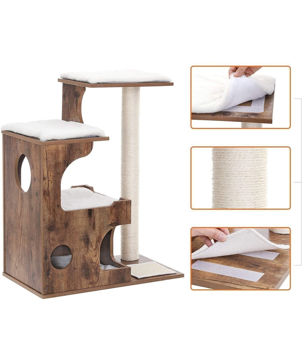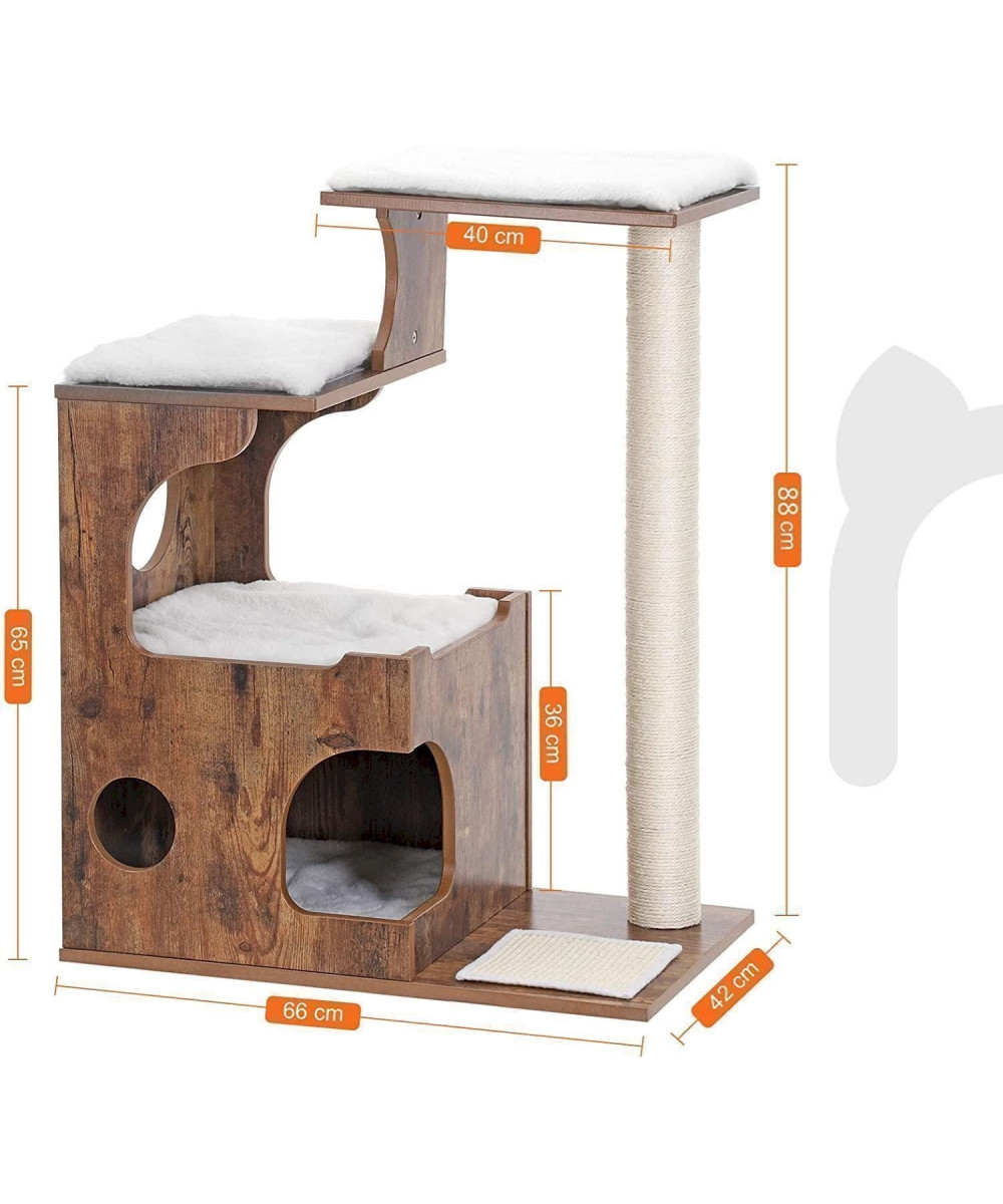 Nos amis félins l'adorent ! En particulier la niche spacieuse et douillette, le poteau entièrement enveloppé de corde de sisal et le tapis à gratter.